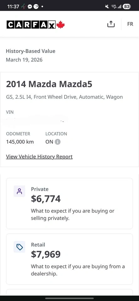 Selling this beautiful 2014 Mazda 5 2.5L touring with 145k. I've gone through this car top to bottom. Replaced everything with OEM parts. This car has no rust at all on the body, it's pretty much rust-free. The price I've listed is very low compared to others; this car goes for $7000+ with the same kms, especially if you can find one that has no rust. I am the second owner of this vehicle. I am pretty firm on the price, but if you don't want the wheels and bring your own, I can come down a bit.