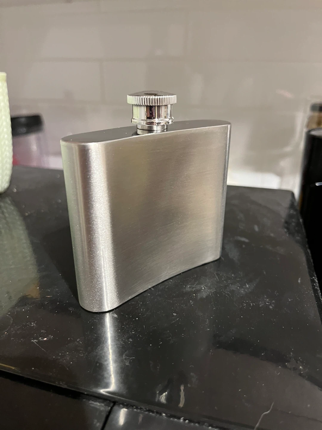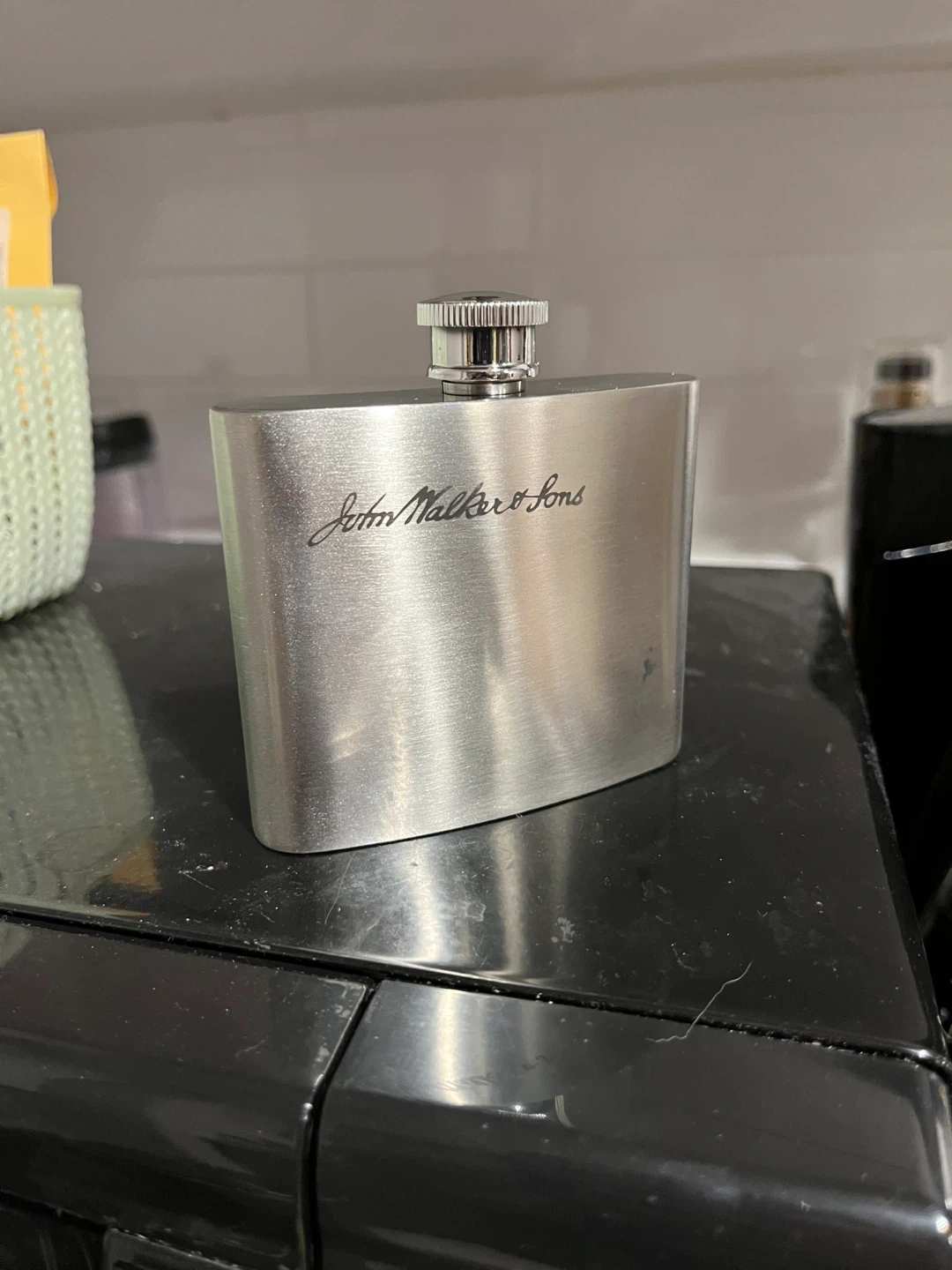 A classic John Walker & Sons stainless steel flask. It's a great item for carrying your favourite spirits on the go. The brushed metal finish gives it a sleek look.