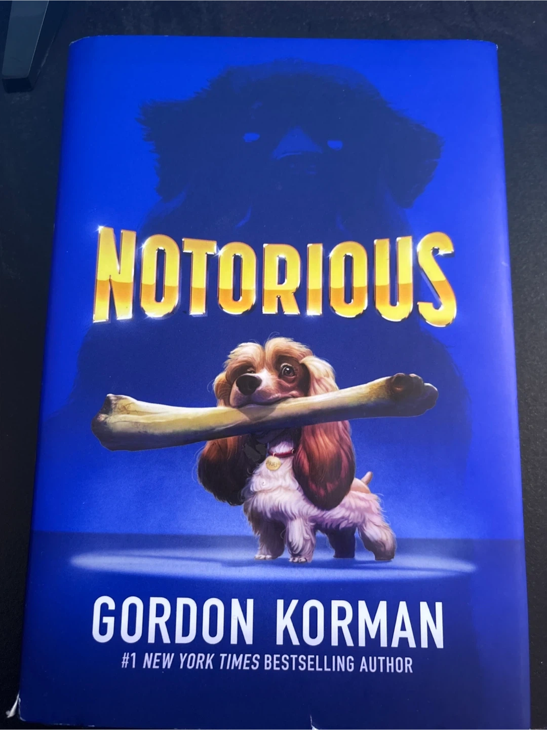 This is the book "Notorious" by Gordon Korman. It's a novel by the #1 New York Times bestselling author. Scholastic Canada Ltd. published this book.