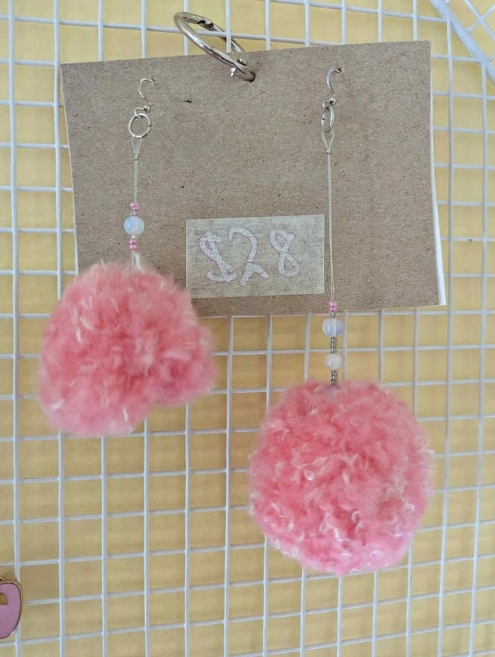 Handmade for my brand Spite Sprite! Fluffy pink yarn is up cycled, the rest is new. One round and one heart shaped pom pom for fun and quirky vibes. Pick up in Ellerslie. Thanks!