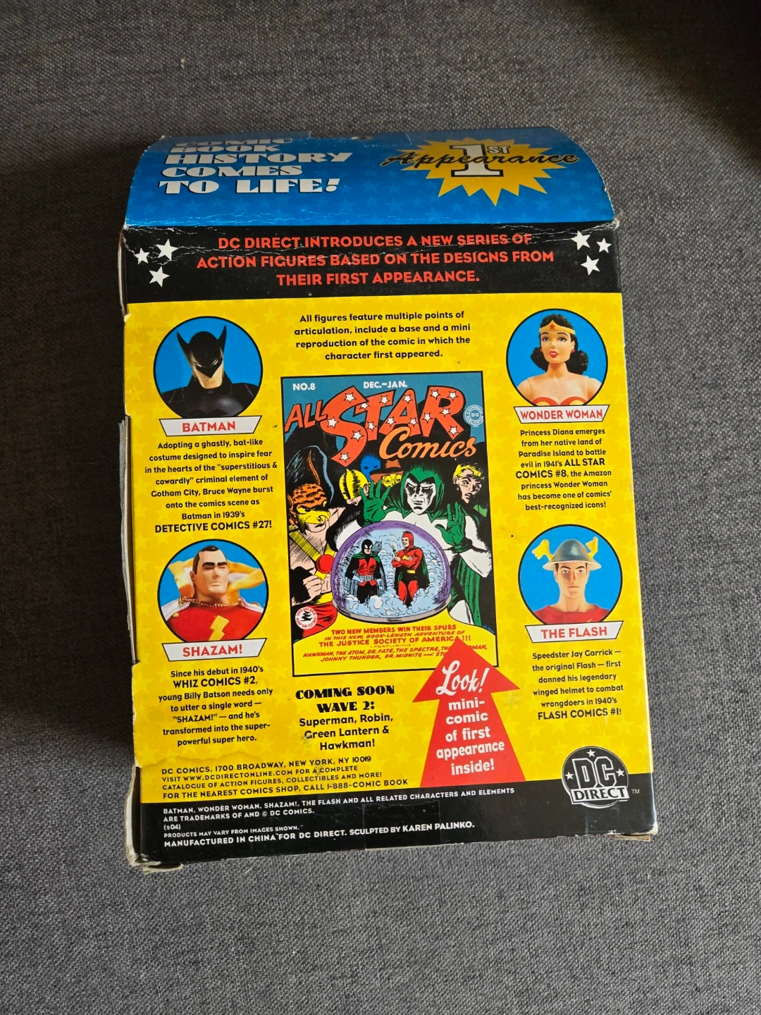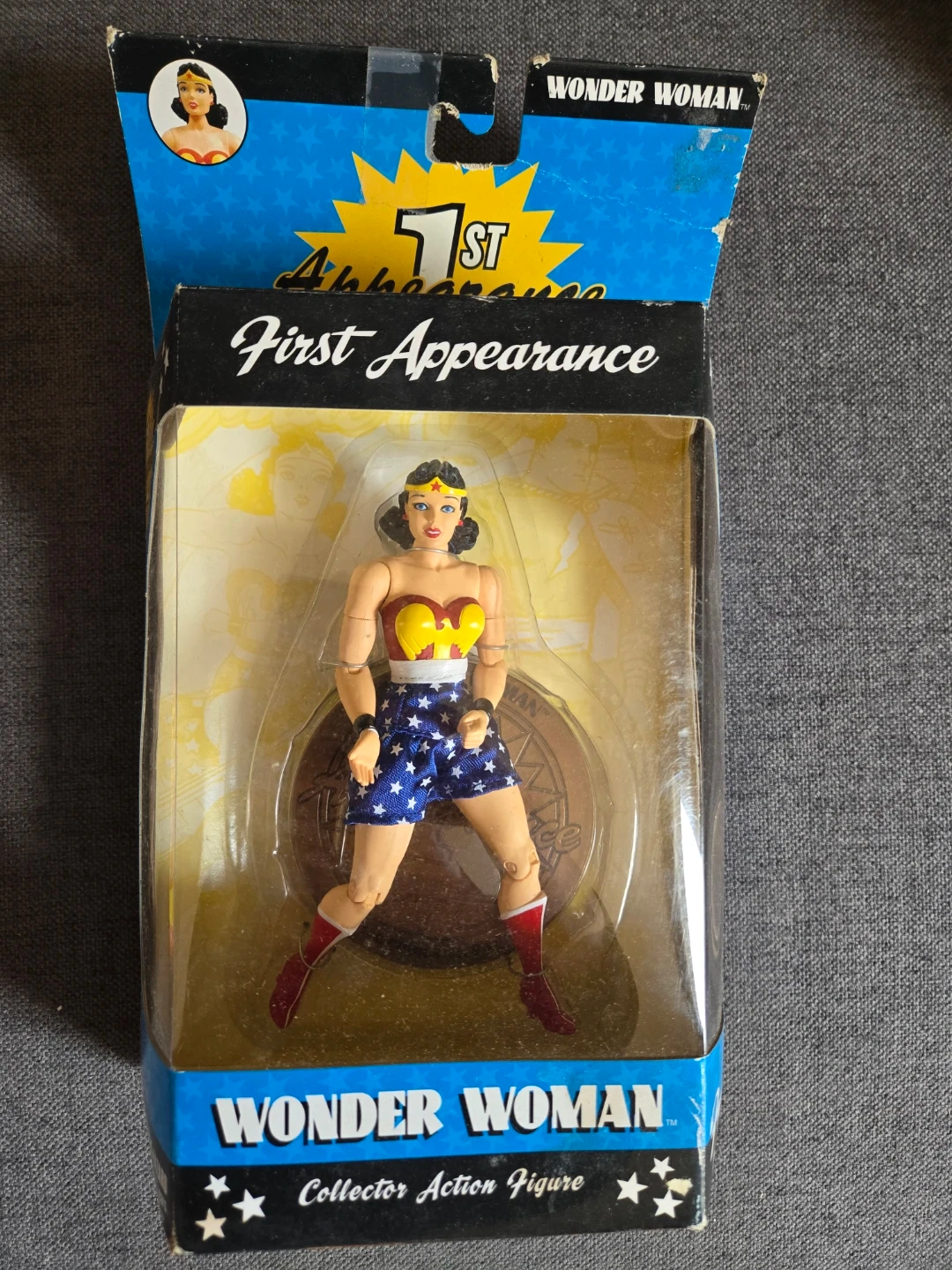 DC Direct's 1st Anniversary Collector Action Figure featuring Wonder Woman's first appearance. This figure showcases the classic design with articulated points. It includes a mini comic of first appearance!