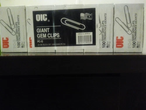 Officemate Giant Premium Paper Clips. 10 boxes, 100 count per box for a total of 1000 clips.