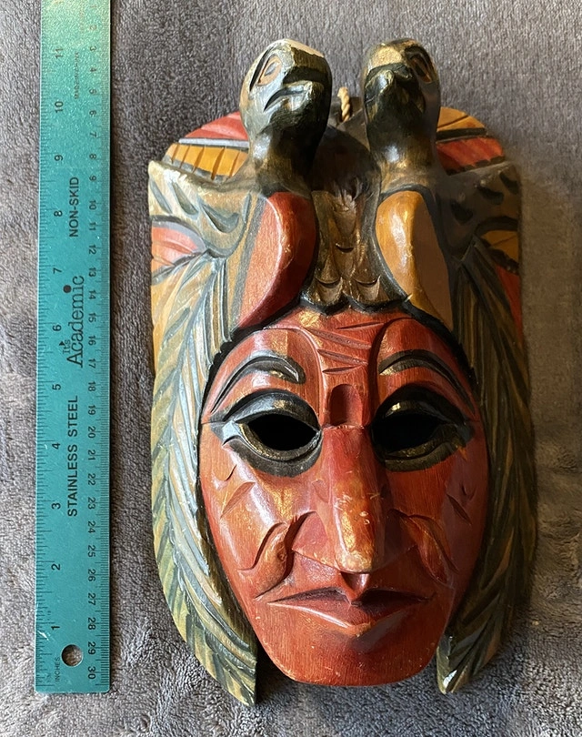 Vintage Hand Carved & Painted Wood Inca Aztec South American Tribal Mask Totem Wall Decor. 11" tall x 7" wide. In very good condition. Selling price: $40. Cash accepted.