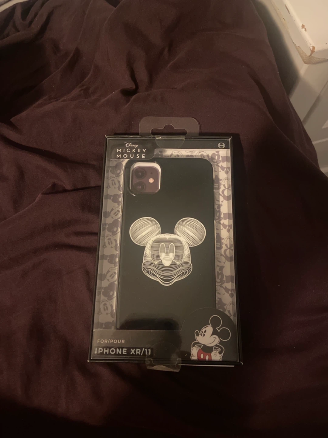 This is a Disney Mickey Mouse phone case designed for the iPhone XR/11. It features a graphic of Mickey Mouse. Includes original packaging.