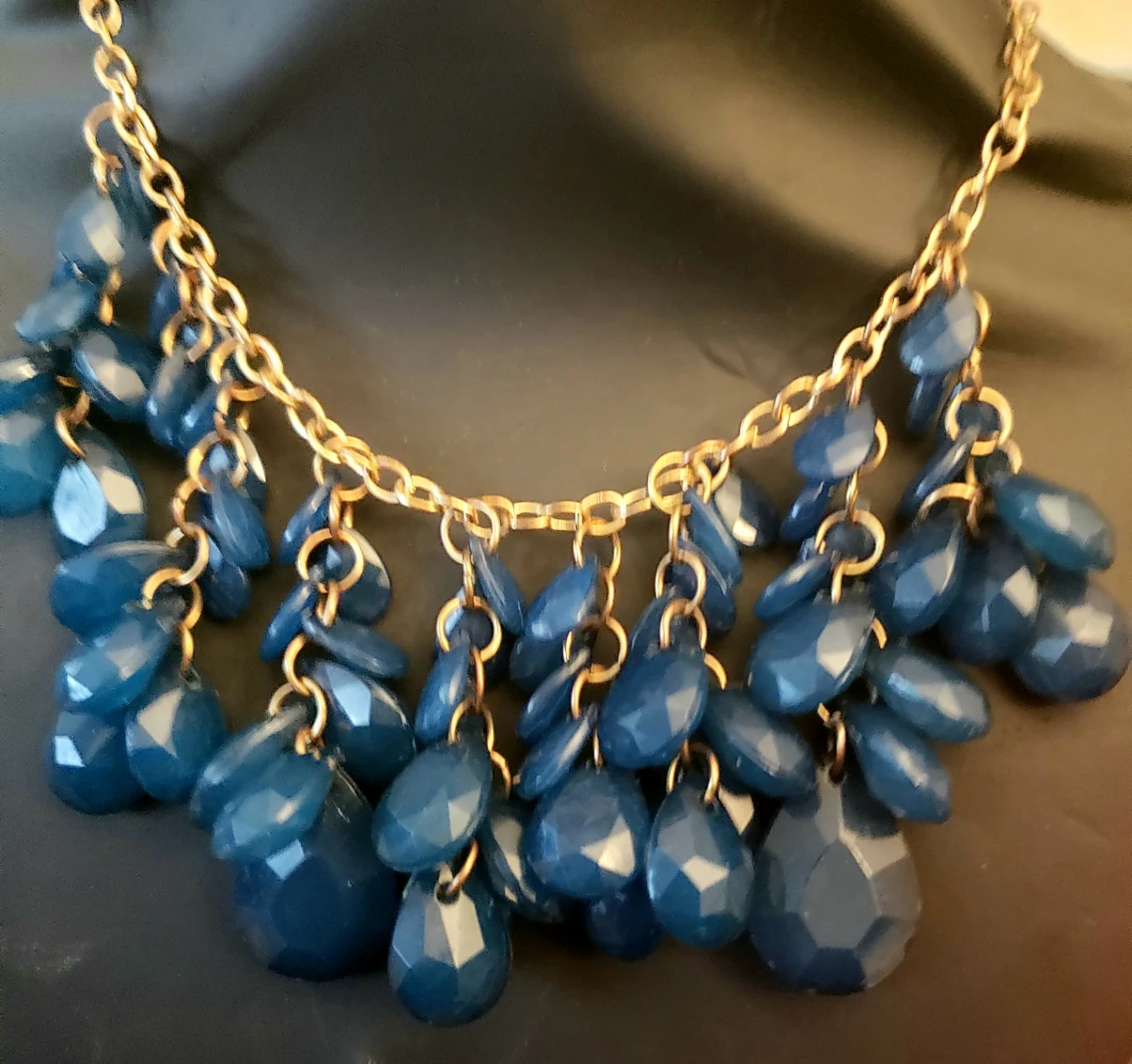 Gold-tone Necklace with Blue Dangle Beads