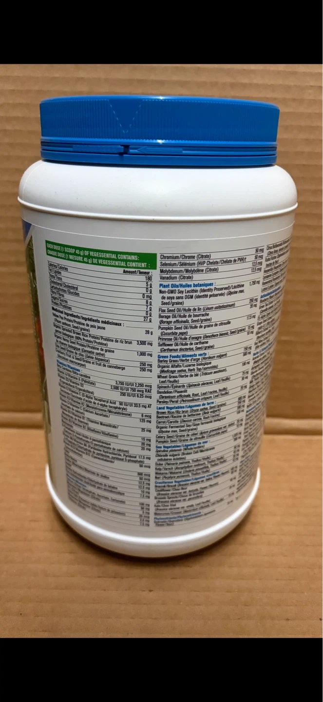 Progressive Vegessential All-In-One protein powder in Natural Vanilla flavour. It contains 27g of protein per serving.