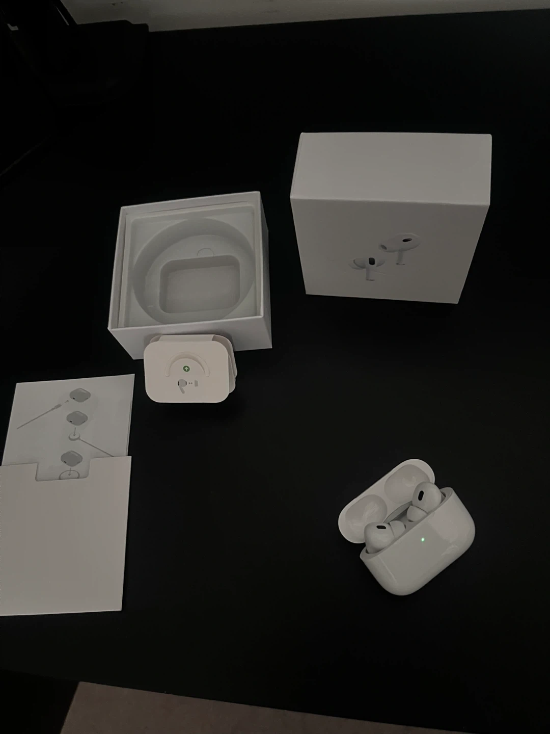Selling a pair of Apple AirPods Pro (2nd generation). Includes the original charging case, charging cable, and all original packaging. These earbuds offer active noise cancellation and transparency mode.