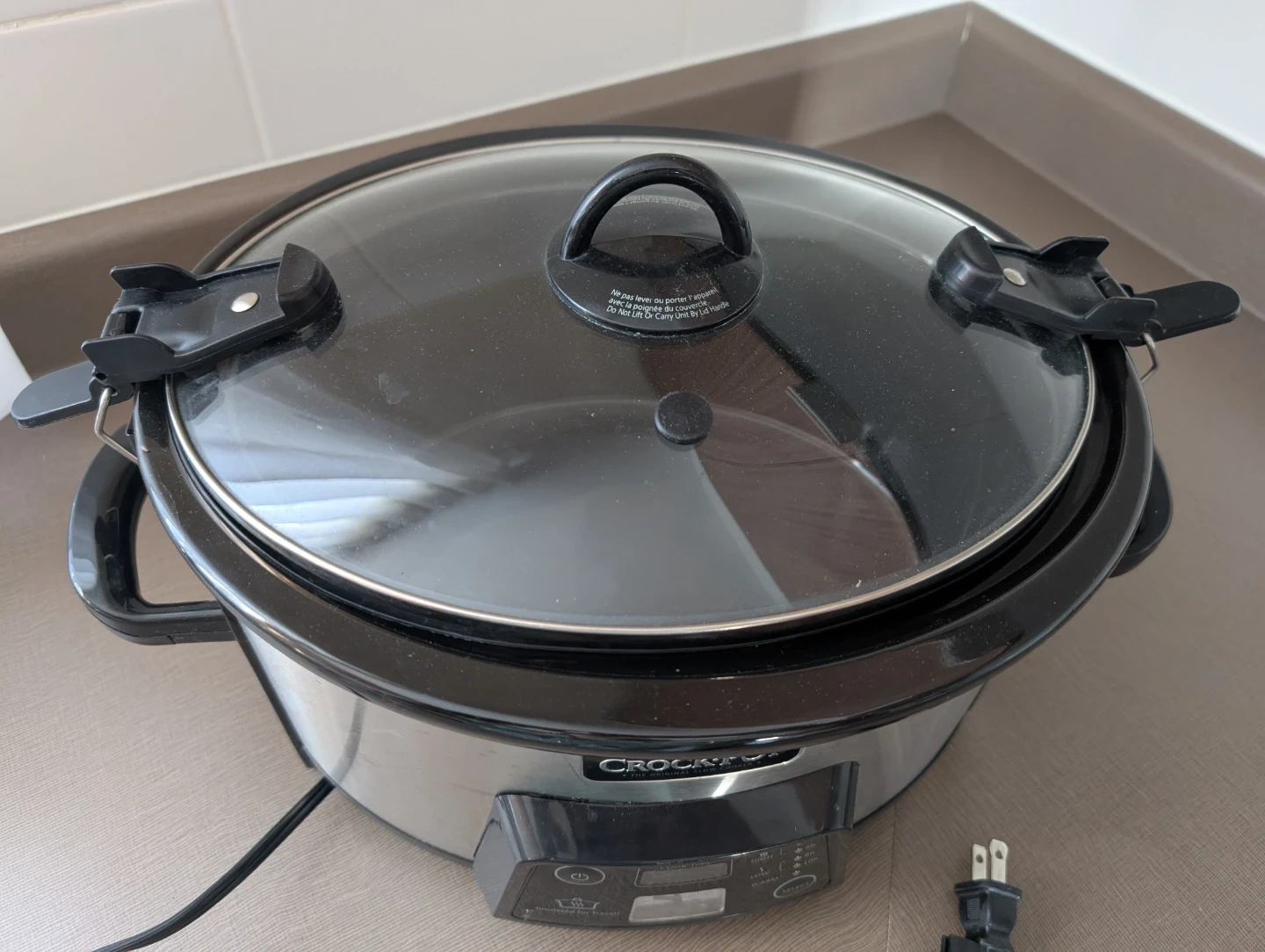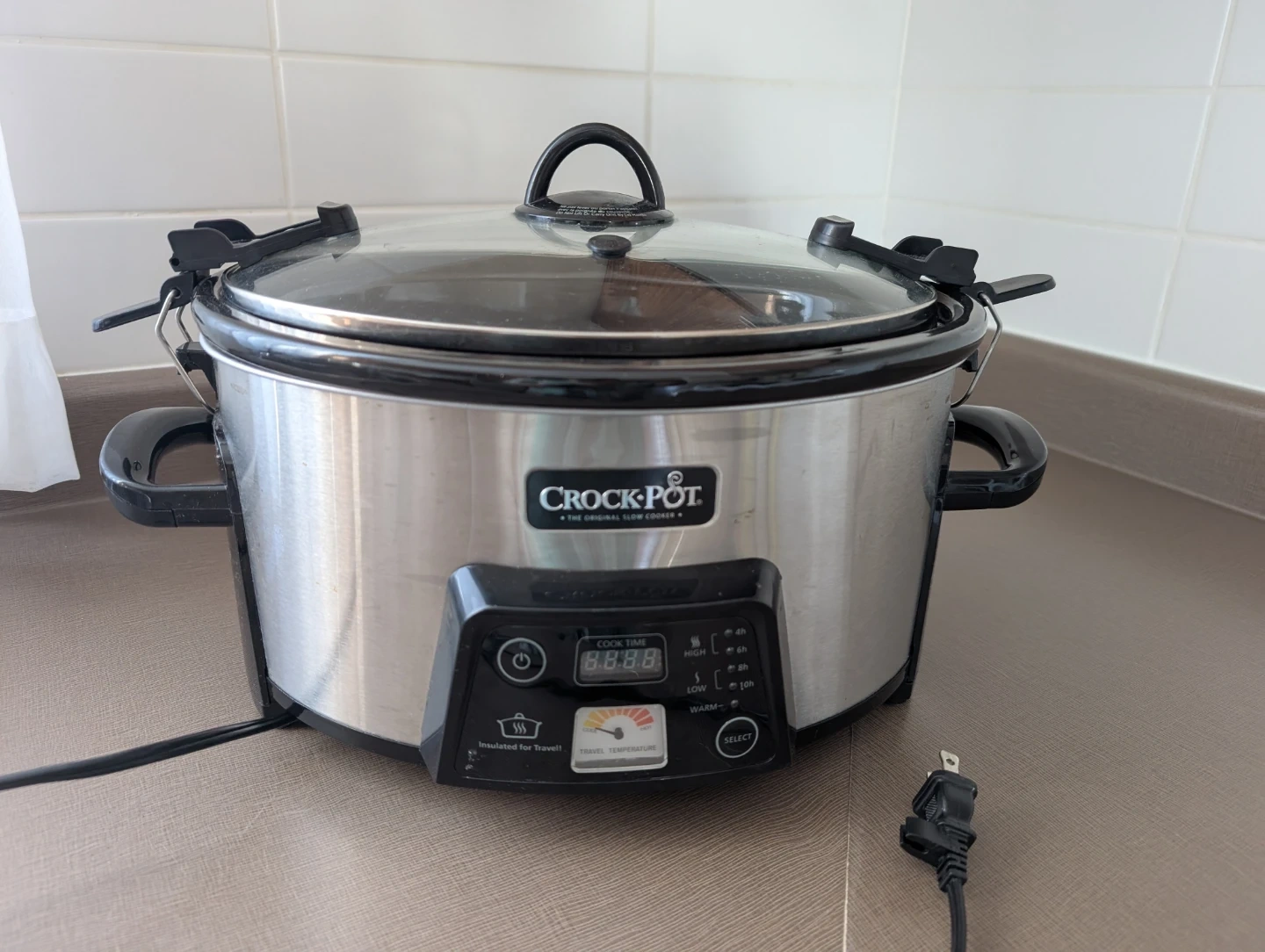 This Crock-Pot is the original slow cooker. It's insulated for travel and has multiple cook time settings. The lid locks securely with clips. Have been used just a couple times and well maintained