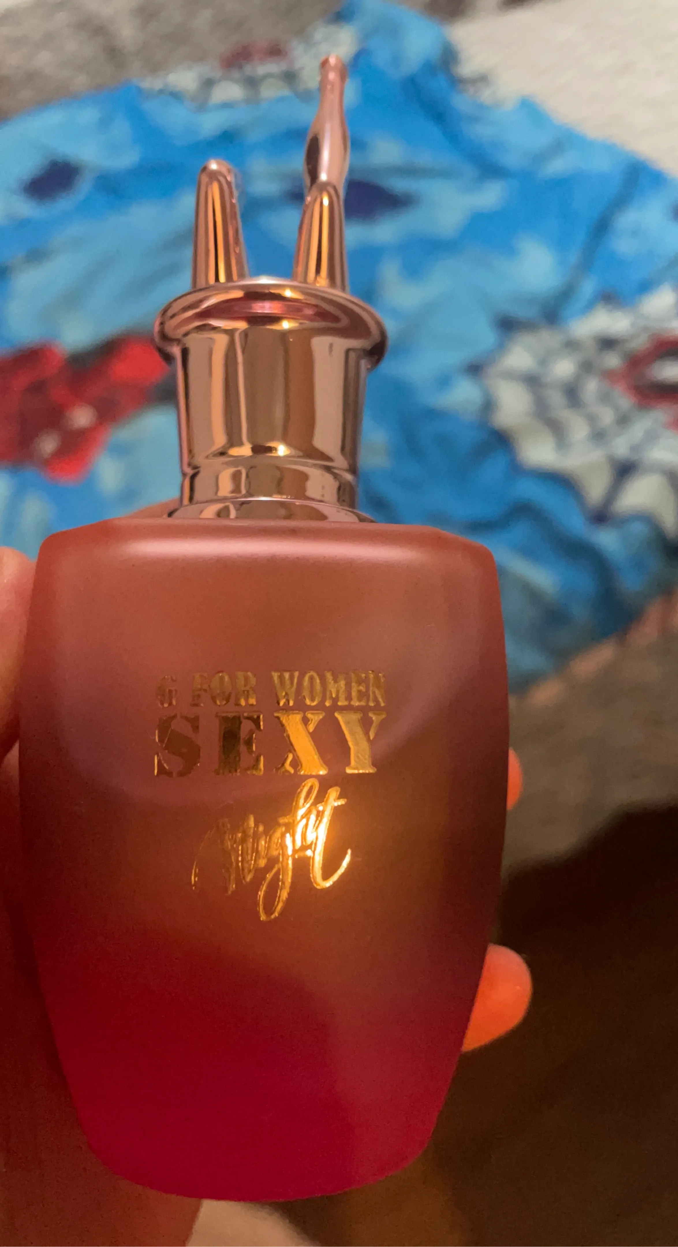 This is a "G for Women" perfume, specifically the "Sexy Night" scent. The bottle has a gradient of rose to red with a rose gold cap and applicator. It's designed for women.
