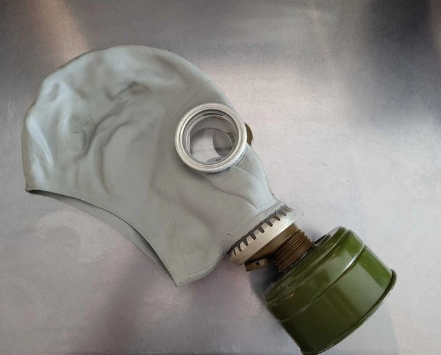 Cold War-era Russian gas mask and filter, both unused and in good shape. I would not recommend using these for protective equipment. They are suitable for cosplay, costumes, or collecting/display.