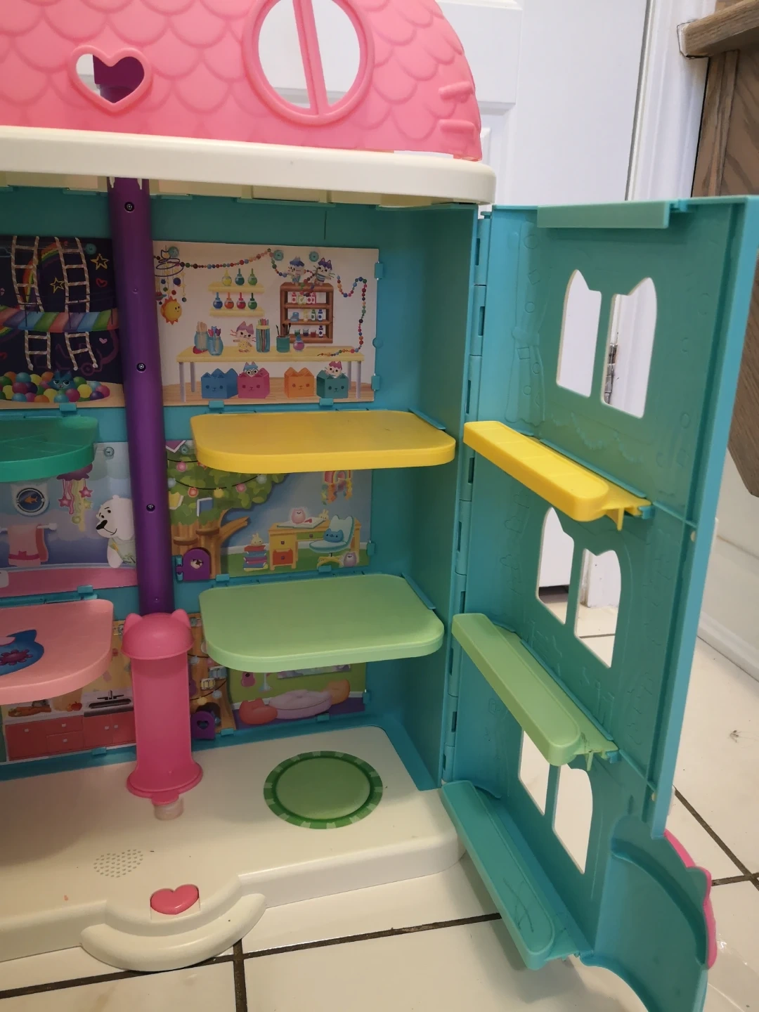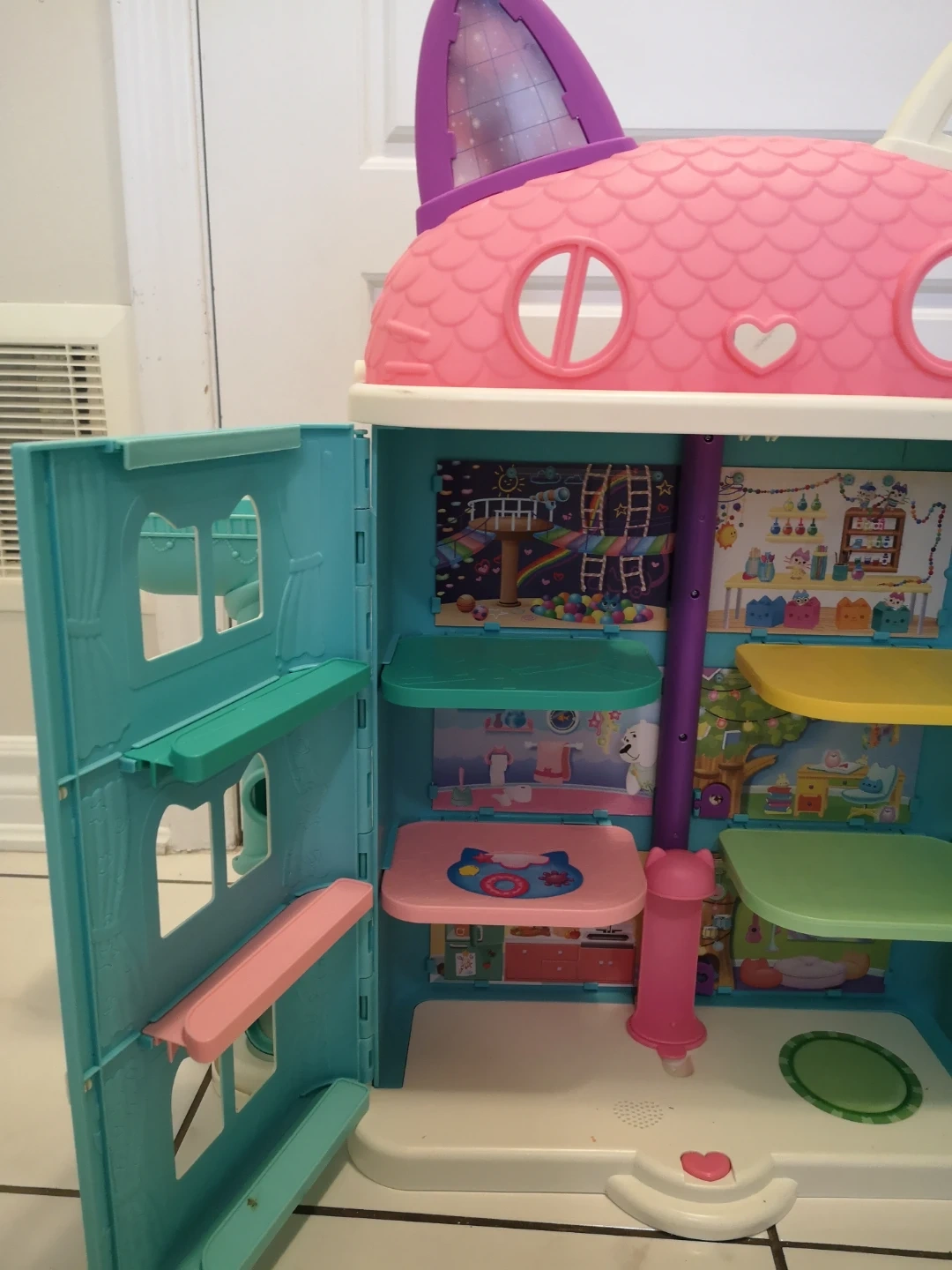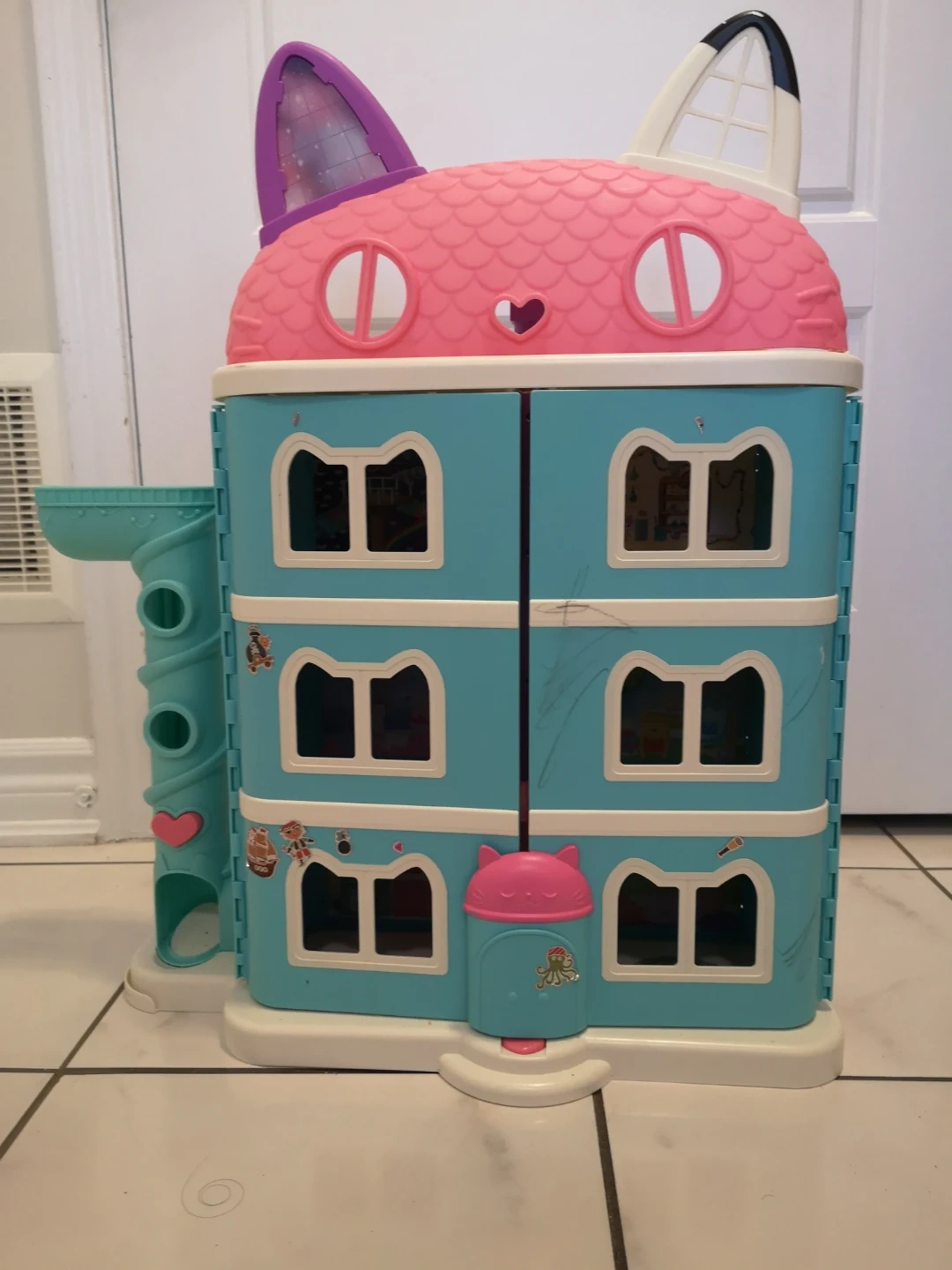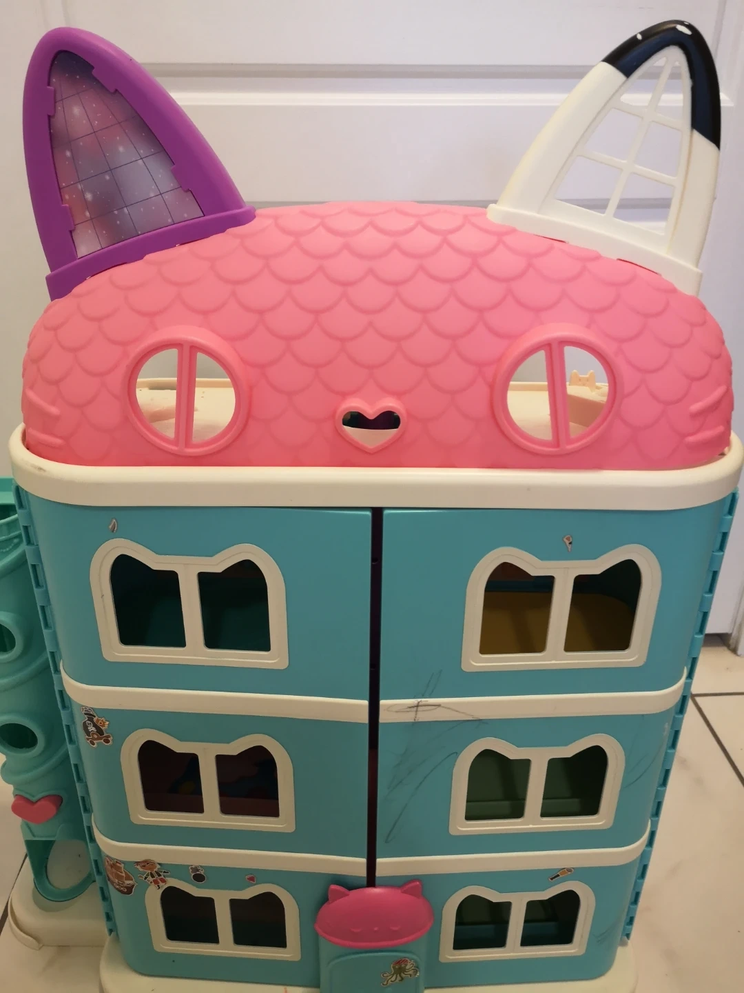 123Selling a Gabby's Dollhouse playset. It's in good condition and ready for a new home! It has a cute cat-themed design with multiple levels and interactive features.
