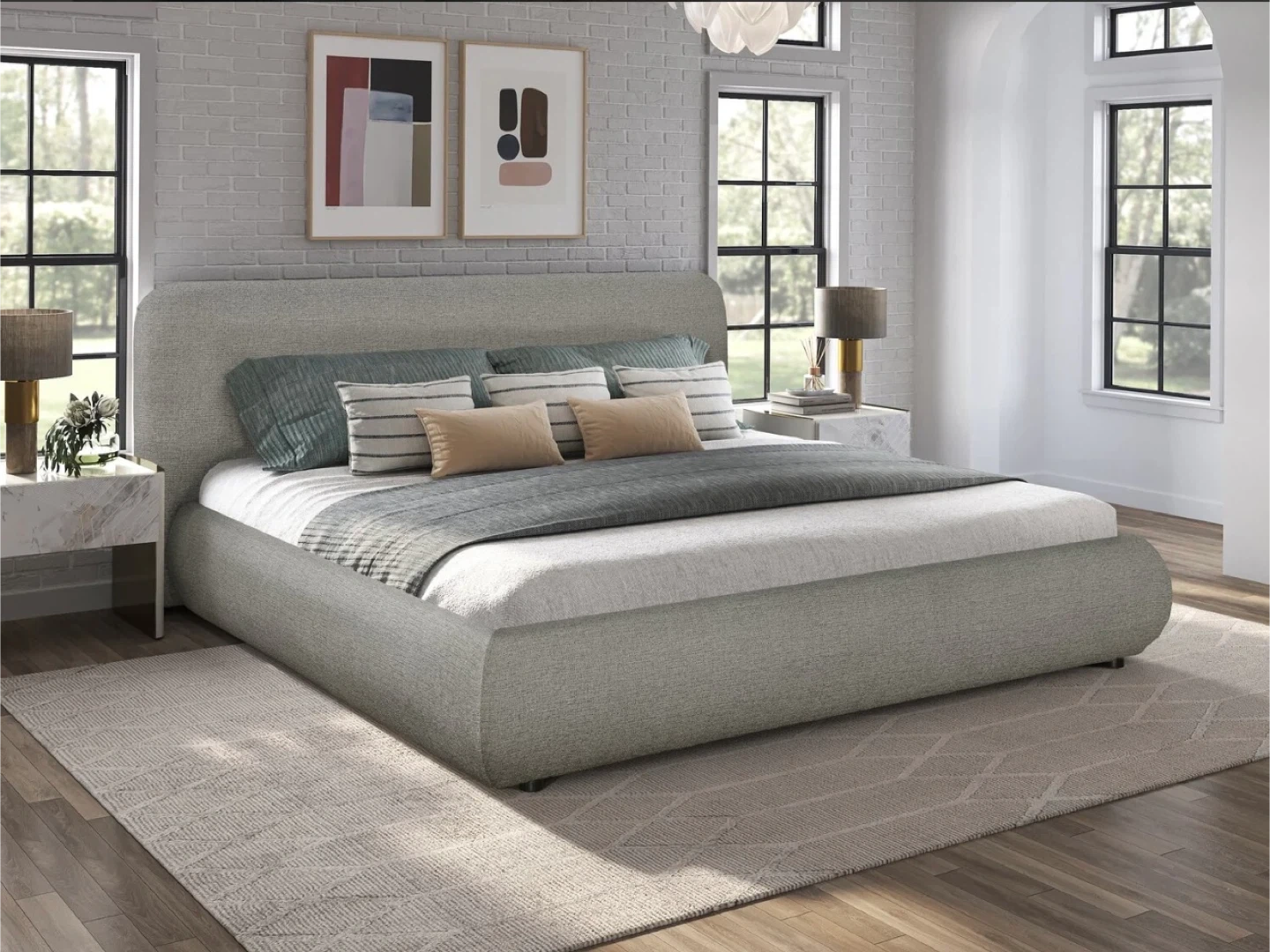Lit rembourré gris