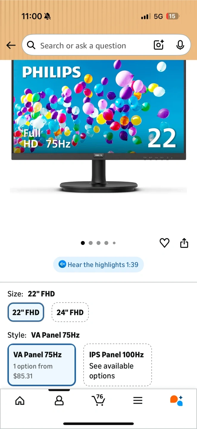 Philips 22 inch Full HD monitor with a VA panel and 75Hz refresh rate. It's great for everyday use. This monitor offers a clear display for your tasks.