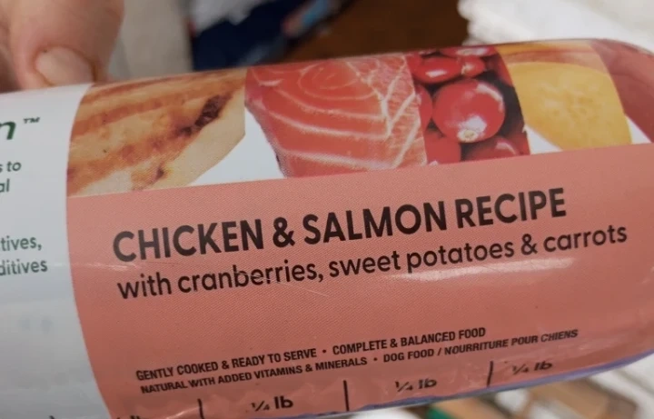 Chicken & Salmon recipe with cranberries, sweet potatoes & carrots.