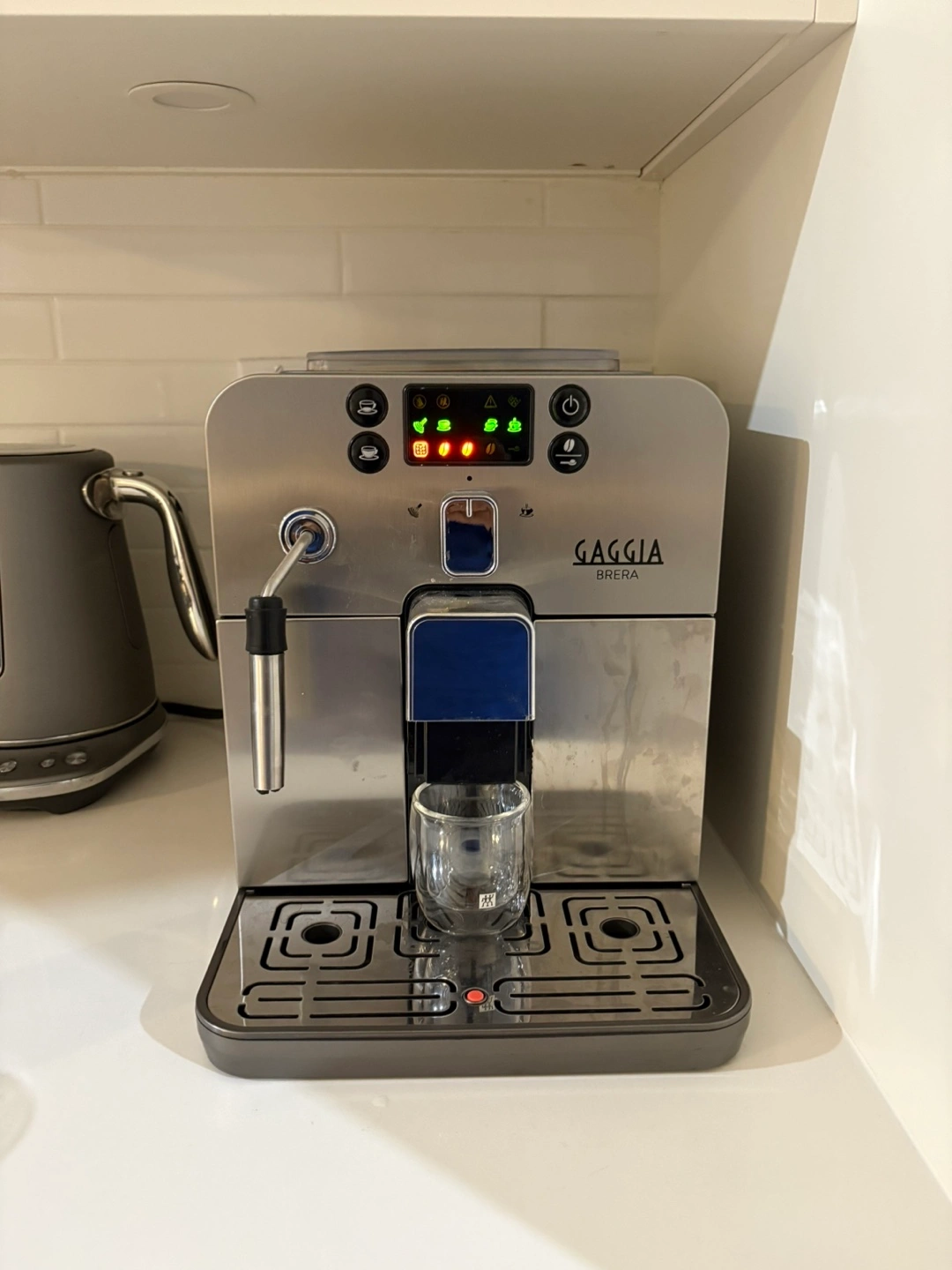 Fully Automatic Coffee Machine The Gaggia Brera is a compact super-automatic espresso and coffee machine that is capable of making anything from espresso to cappuccino. The Pannarello wand allows you to steam and foam your milk. Programmable Brewing Stainless Steel Front Panel Intuitive Operation