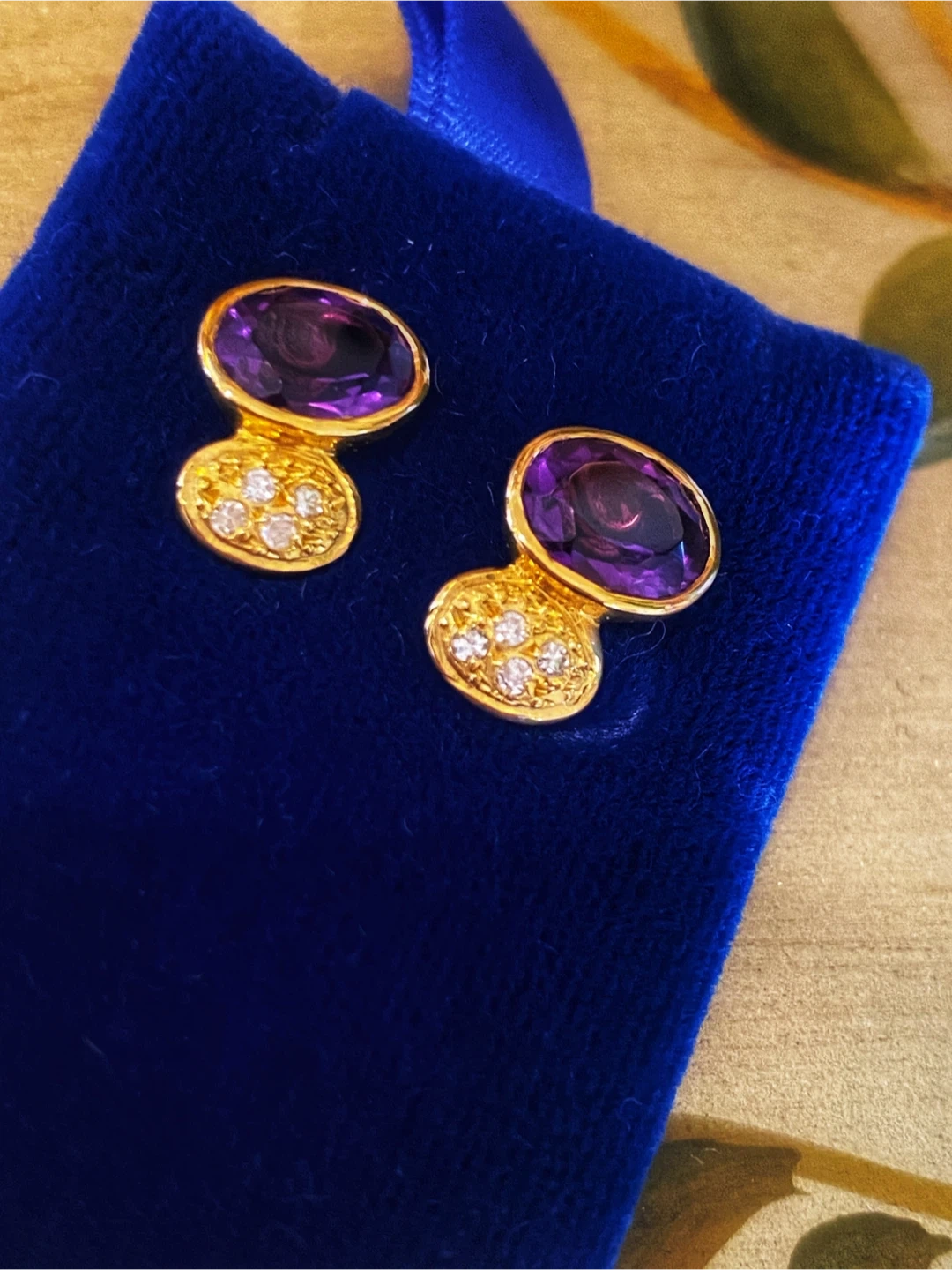 💜Stunning Estate Vintage 18k Gold Amethyst Diamond Earrings from Brazil!💜These earrings add a touch of sparkle and sophistication to any look! 💜Perfect for adding a pop of colour to your jewellery collection.💜 H.Stern💜