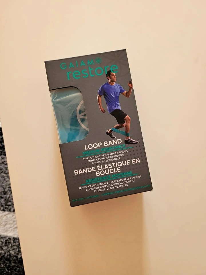 Unopened box of GAIAM restore loop band (Medium resistance). Bought and no longer in use.