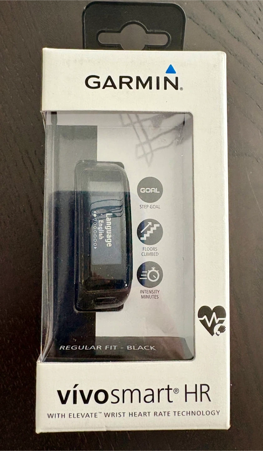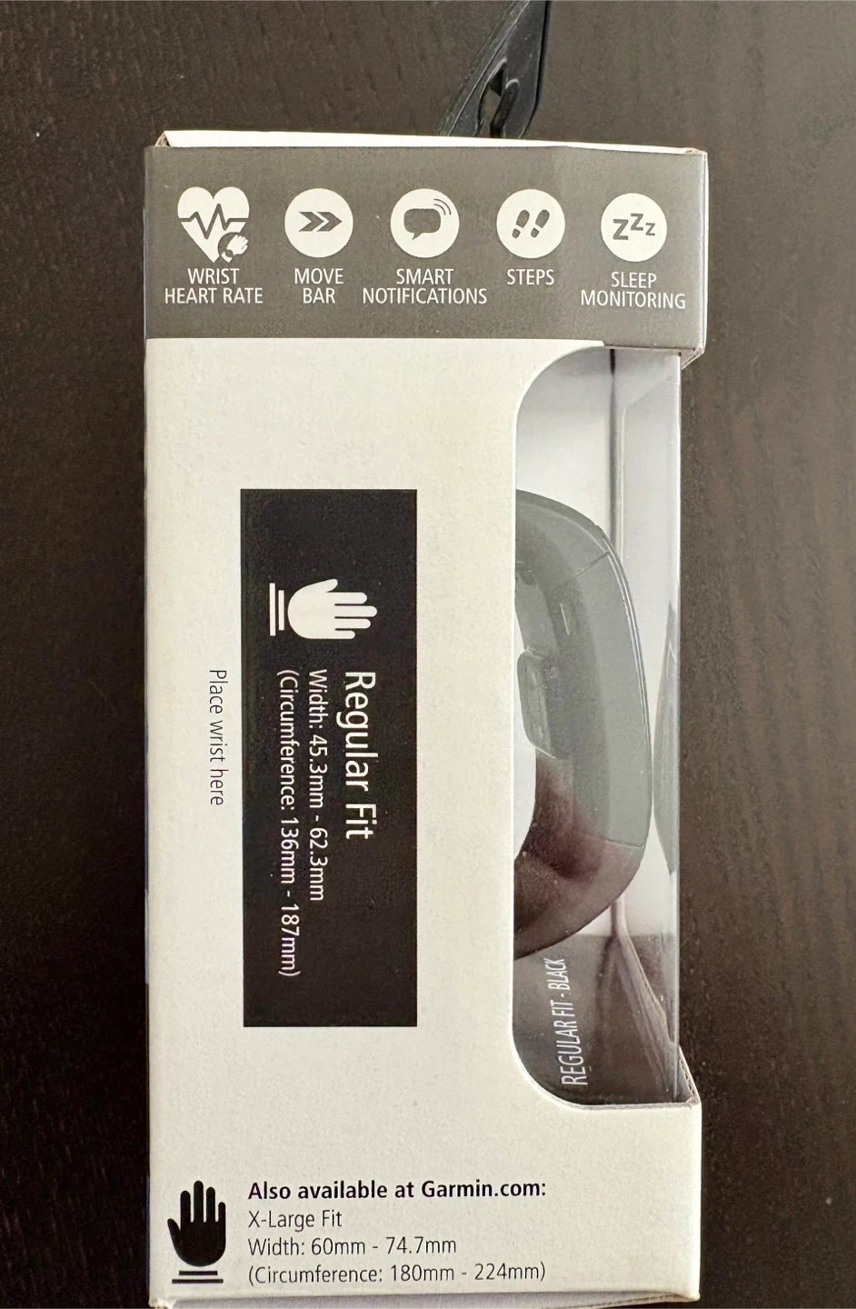 Garmin vívosmart HR activity tracker in black, regular fit. It's designed with Elevate wrist heart rate technology and tracks steps, sleep, and intensity minutes. Width is 45.3mm - 62.3mm, with a circumference of 130mm - 187mm. It's compatible with iPhone 4S and later, plus Android devices. Includes smart watch, extra band, charger, original box and instructions. Works great. From a very clean smoke free home. Cash only.