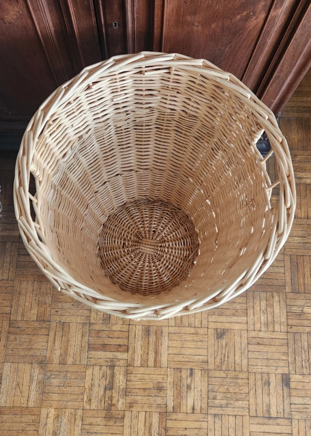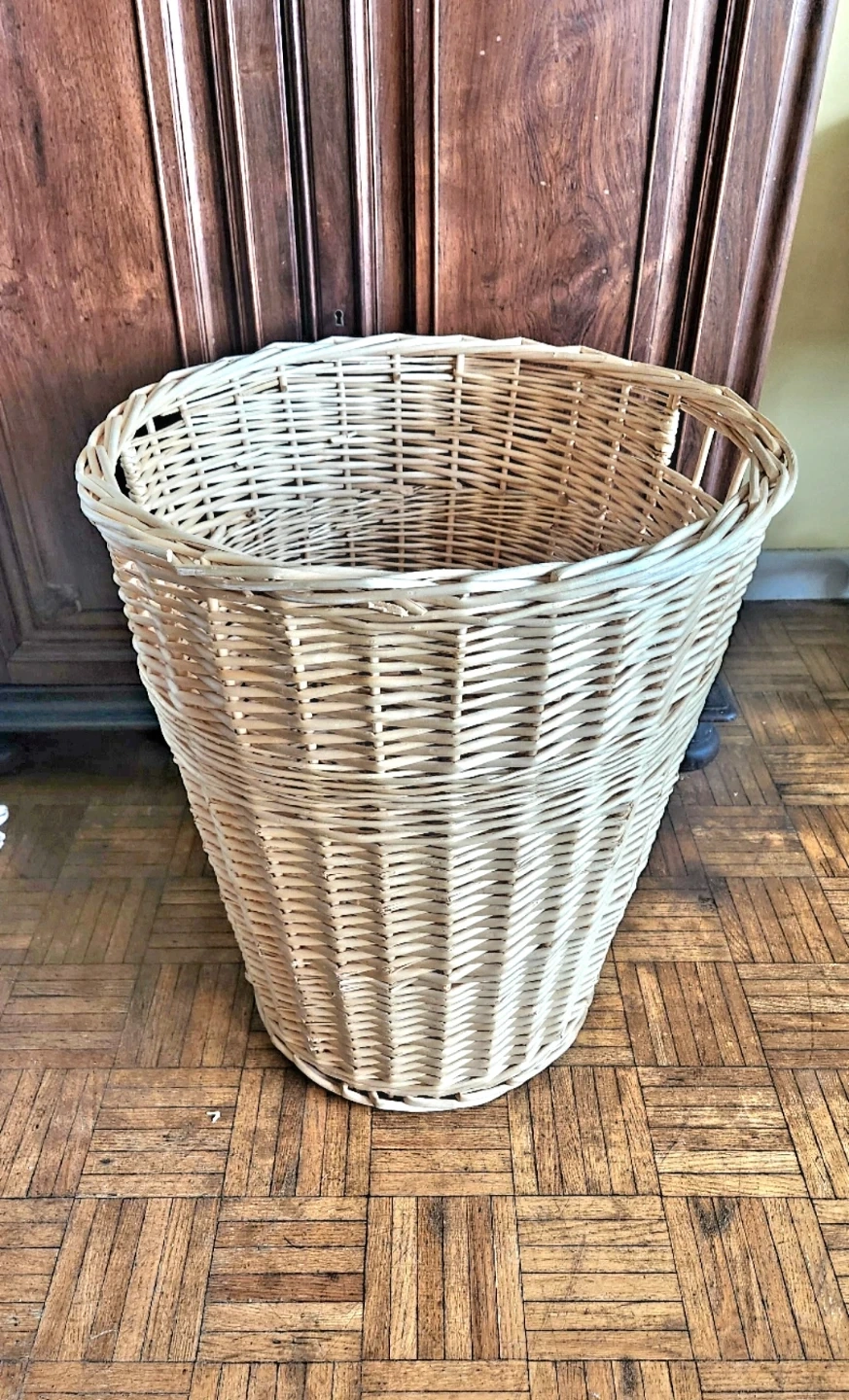 Large natural wicker basket in good condition. Perfect for laundry, blankets or toys. Lightweight and sturdy.