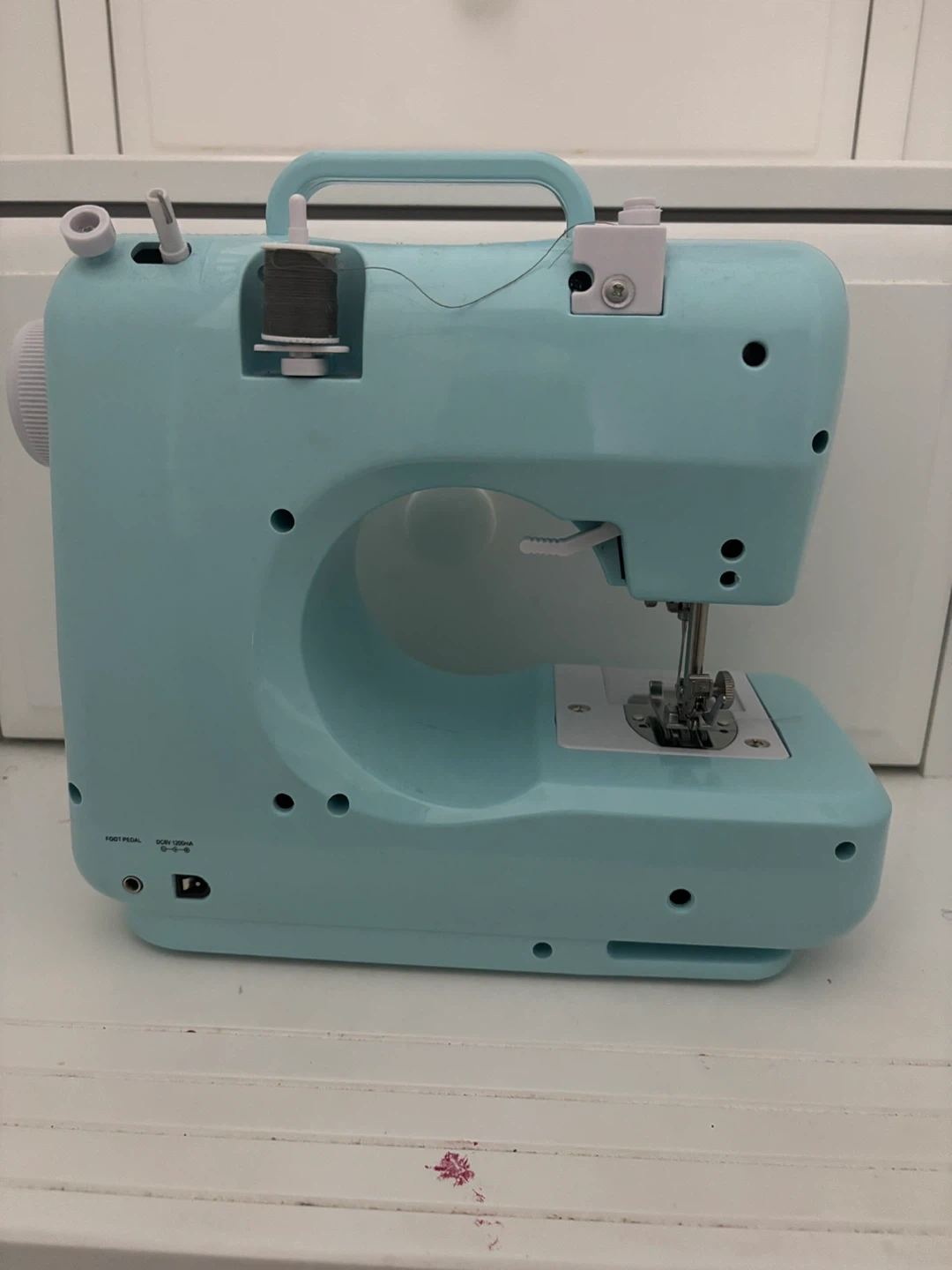 Selling a Galadim mini multifunctional household sewing machine in a pretty mint green colour! It's super portable and easy to use. It has multiple stitch patterns and a bobbin rewinder. It also features a long-lasting LED light and a drawer is included. Comes with the original box!