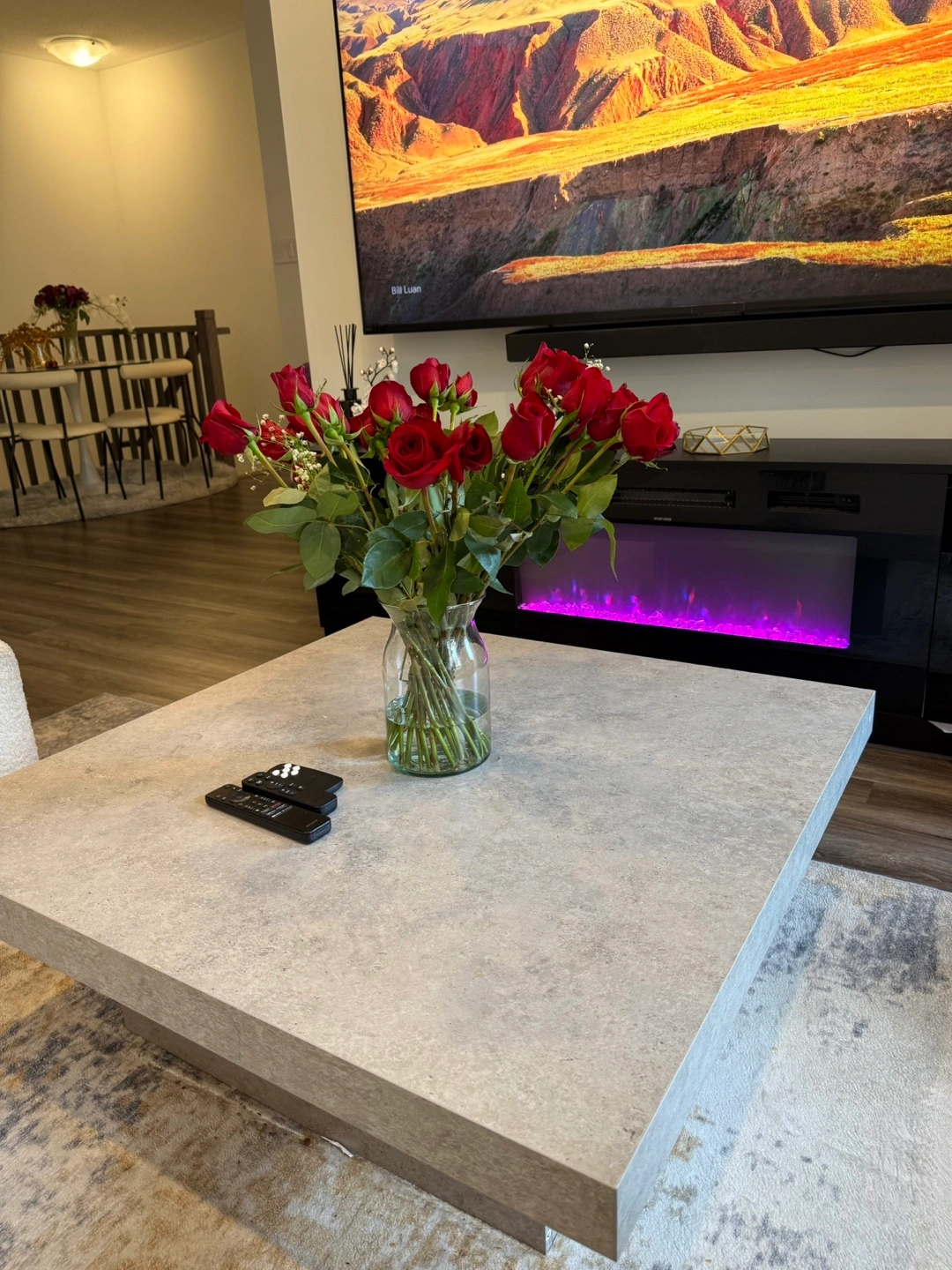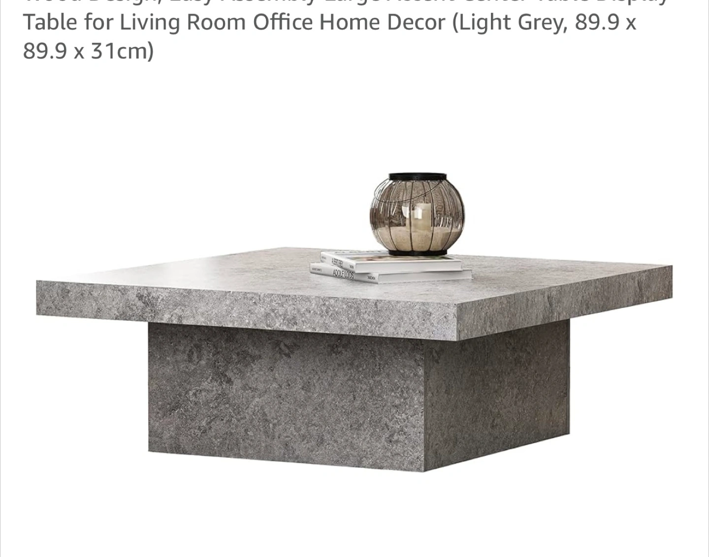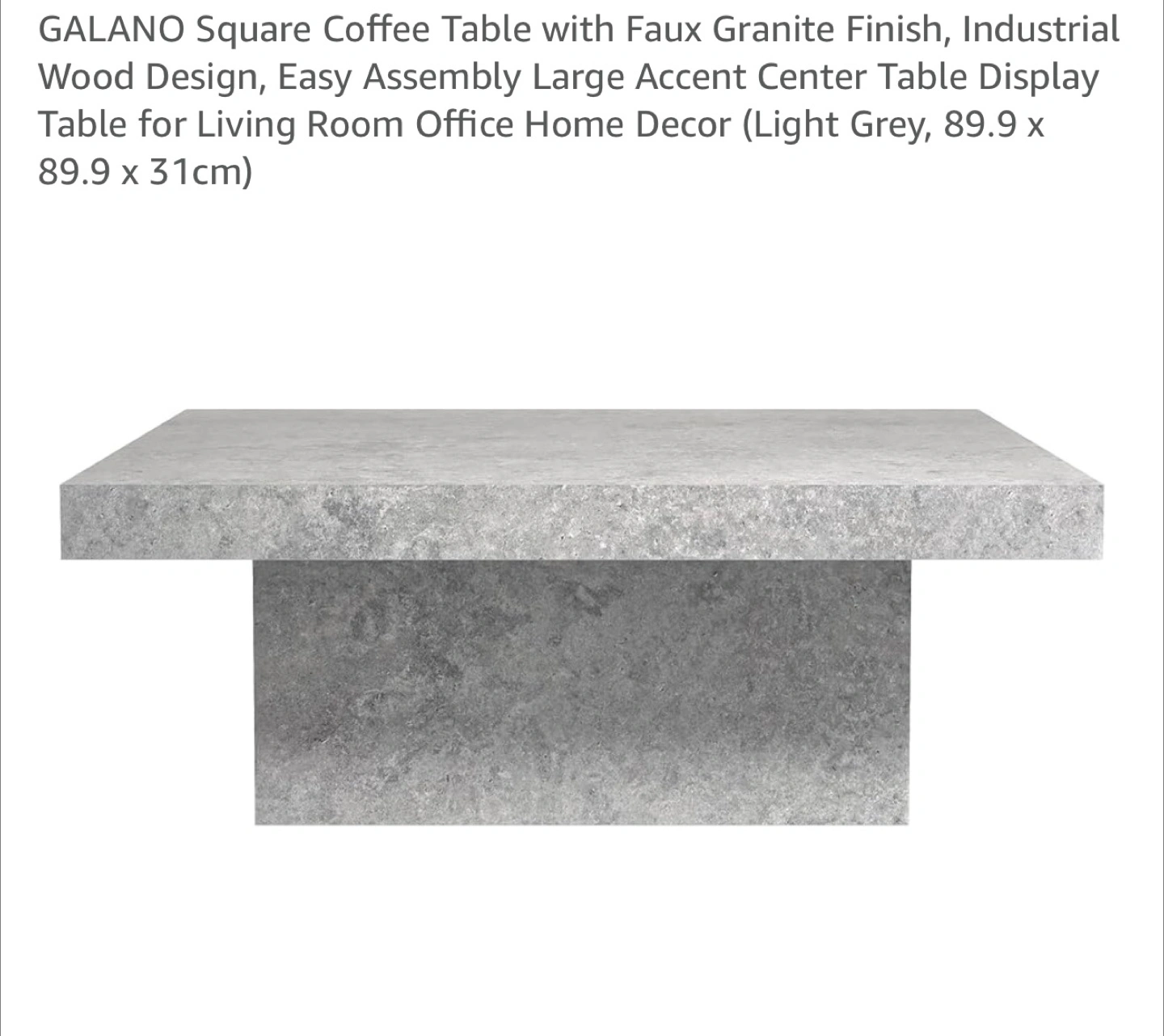 OPEN TO NEGOTIATIONS! Selling a GALANO square coffee table with a faux granite finish! It features an industrial wood design and is easy to assemble. It's a large accent center table, perfect for a living room or office. Dimensions are 89.9 x 89.9 x 31cm. It's in great condition!