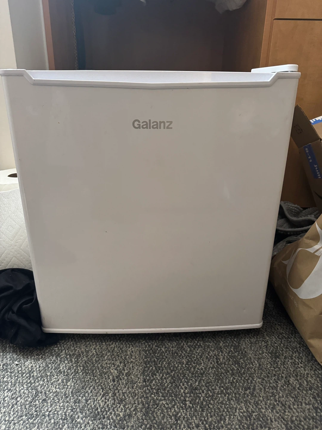 10Selling a Galanz mini fridge in white. It's in great working condition and perfect for a dorm room, office, or small apartment. This compact fridge offers convenient cooling without taking up too much space it a cubic fridge