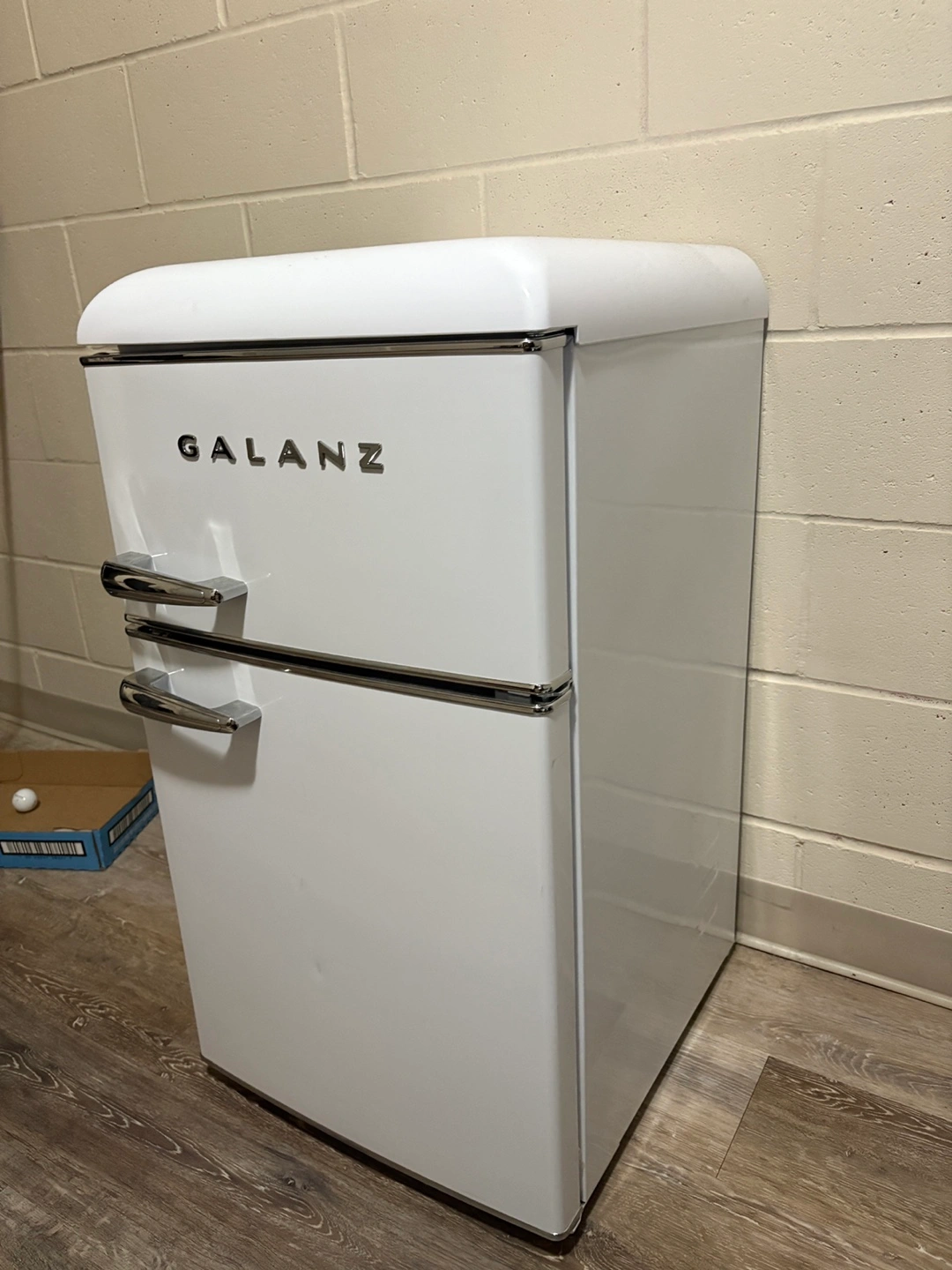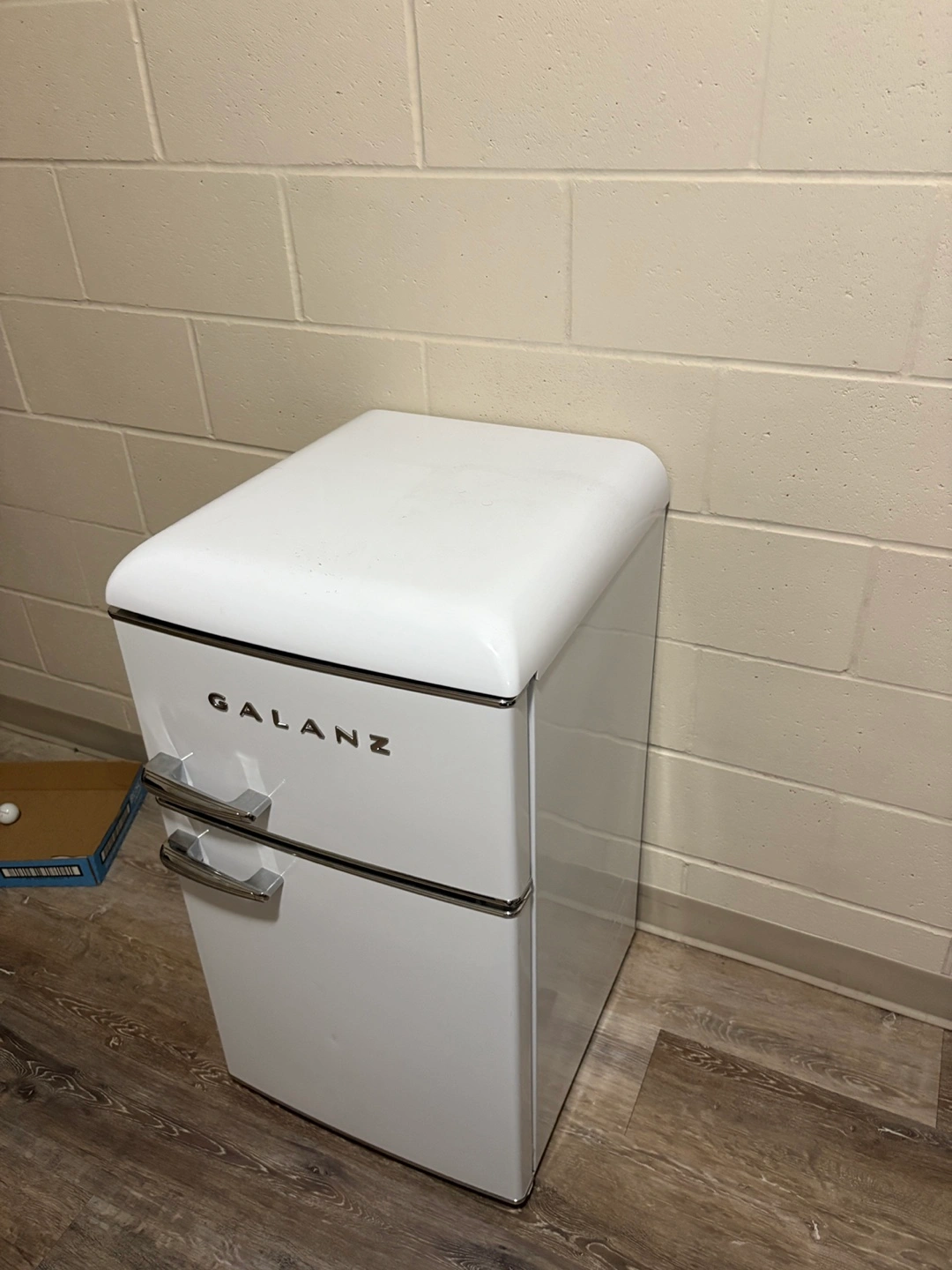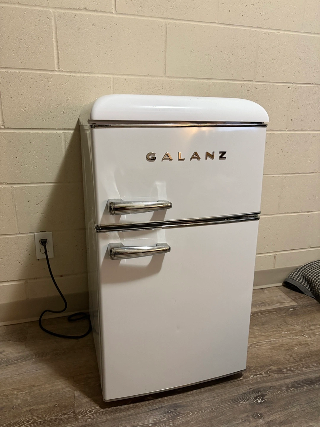 Selling a Galanz retro mini fridge in white. It's in great condition and would be perfect for a dorm room, office, or small apartment. It has a cool retro look! Available for Pick Up/Drop off