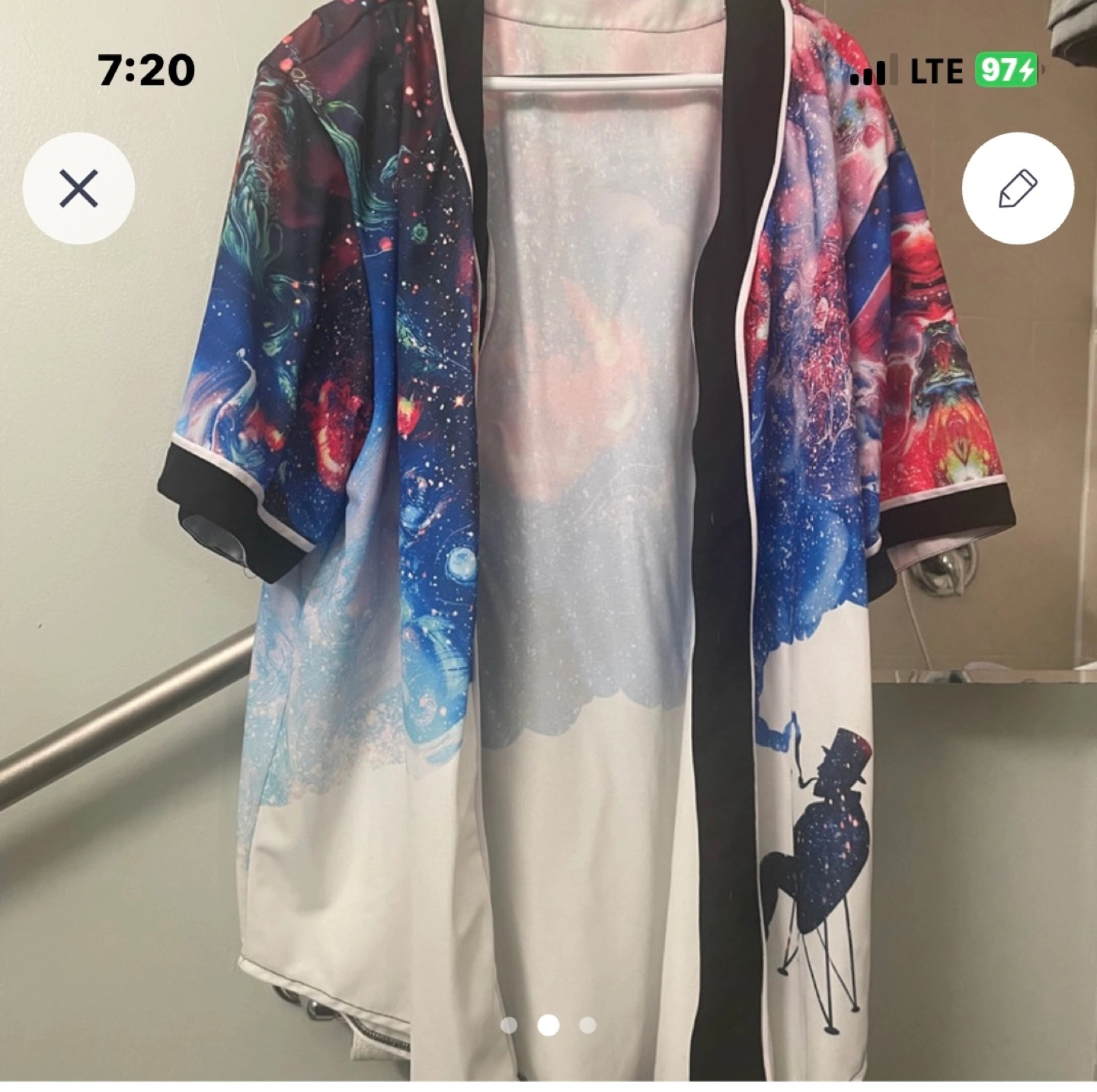 128Unique galaxy printed baseball shirt. Short sleeves. Button-up front. Vibrant colours. Great for summer. Pickup only (am in a wheelchair)♿️