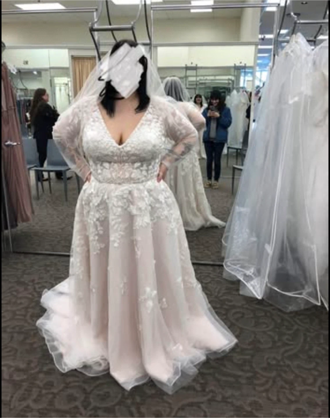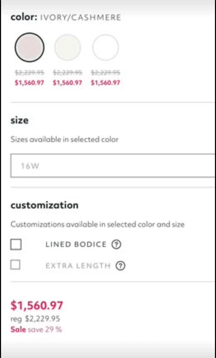 82Selling a beautiful wedding dress from David's Bridal. It's a size 16W and comes in the colours ivory and cashmere. Originally bought for $1,560.97. It's in great condition and ready for its next special day WORN ONCE ON MY WEDDING DAY AND HAS BEEN HUNG UP IN A PROTECTIVE BAG EVER SINCE. Bought for 2229.95 Selling for 700.00$ OBO Ivory/Cashmere Color More than welcome to come try on before purchasing. Can also offer shipping on my own dime. 700.00 is the ideal, but I am VERY open to offers!!