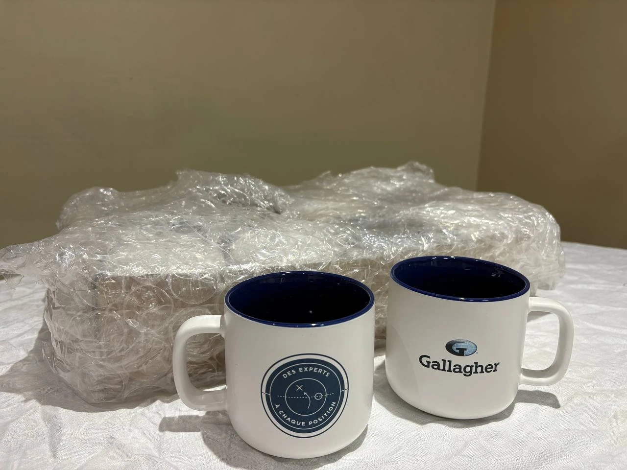 101Selling a set of two mugs, one with the Gallagher logo and the other with the 'Des Experts' design. Both are white with a navy blue interior. They are in great condition and ready for a new home! 1$ Each