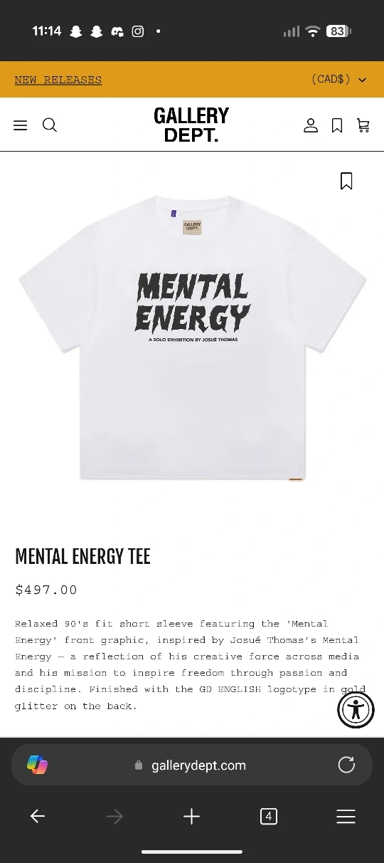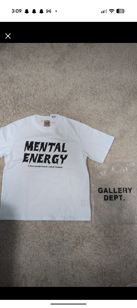 10Gallery Dept. "Mental Energy" T-shirt in size medium. Made in the USA with 100% cotton. It's white with black lettering on the front and gold lettering on the back. Comes in original packaging Brand new, never worn, got it as a birthday present and trying to get a different one Good quality good stitching 500 CAD plus tax new Men's medium 200 OBO Also have bag and tags still intact DM for more info