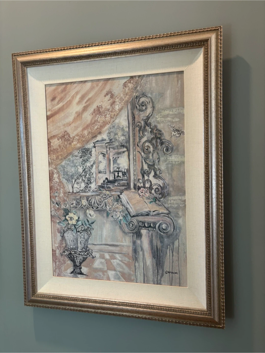 60Here's a beautiful framed painting signed by Gamache. It would look great in any home! LINEN BINDING Dimensions 28” X 36”