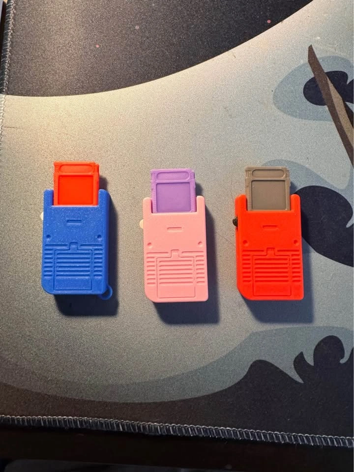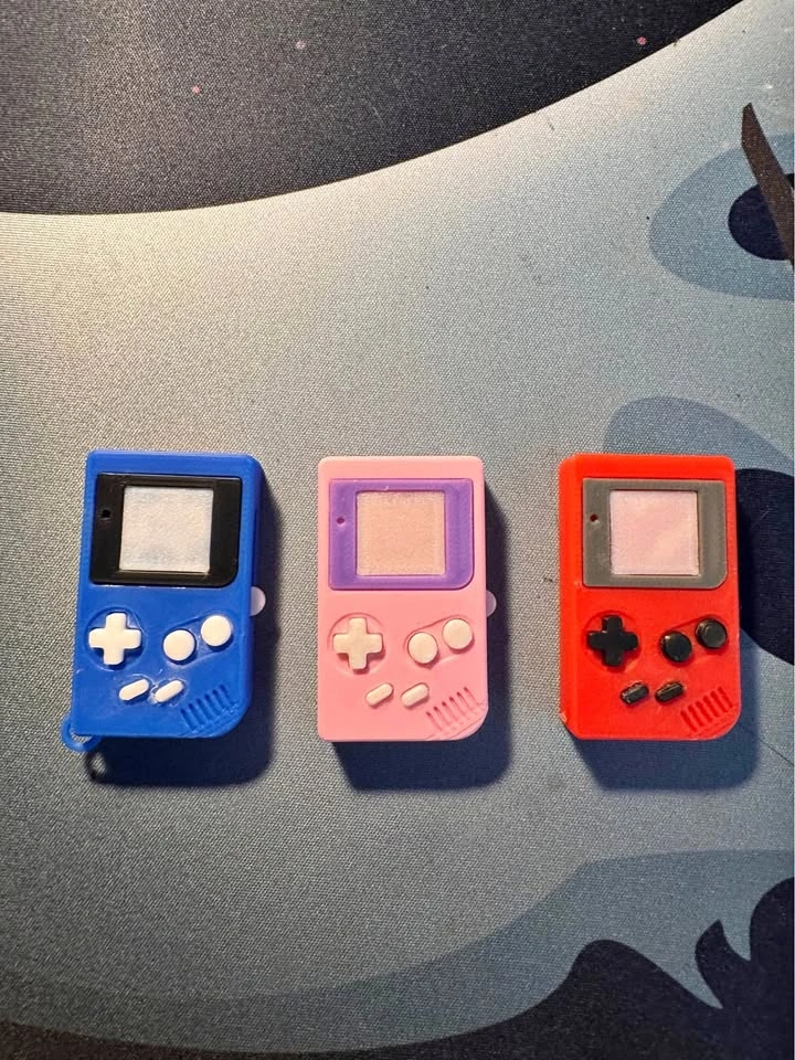 653D printed gameboy fidget keychains, highly customizable with many different colours such as; black, white, blue, red, green, purple, pink, sky blue, orange, and yellow. Can be printed and assembled in less than 1 day so orders can be made and completed ready for pickup around lakeshore and maple in Burlington fast!