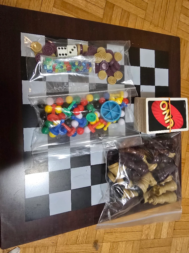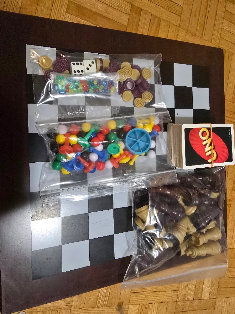 Selling my Game House Box. Bought it for $90 about 4 years ago and only used a couple of times. It’s slightly worn on the outside since I used it as a stand for my night lamp, but everything is still functional. May be missing a few coins, but the full chess set is included. I’ll also throw in a bonus UNO pack