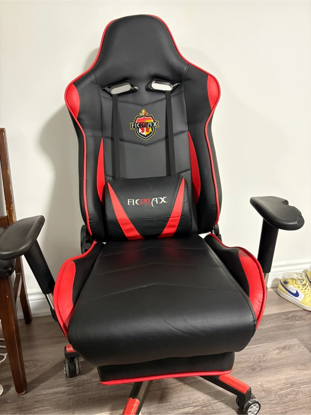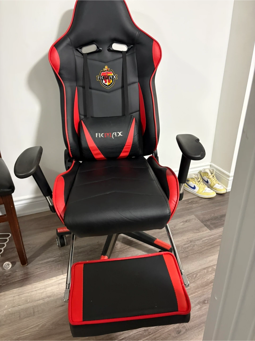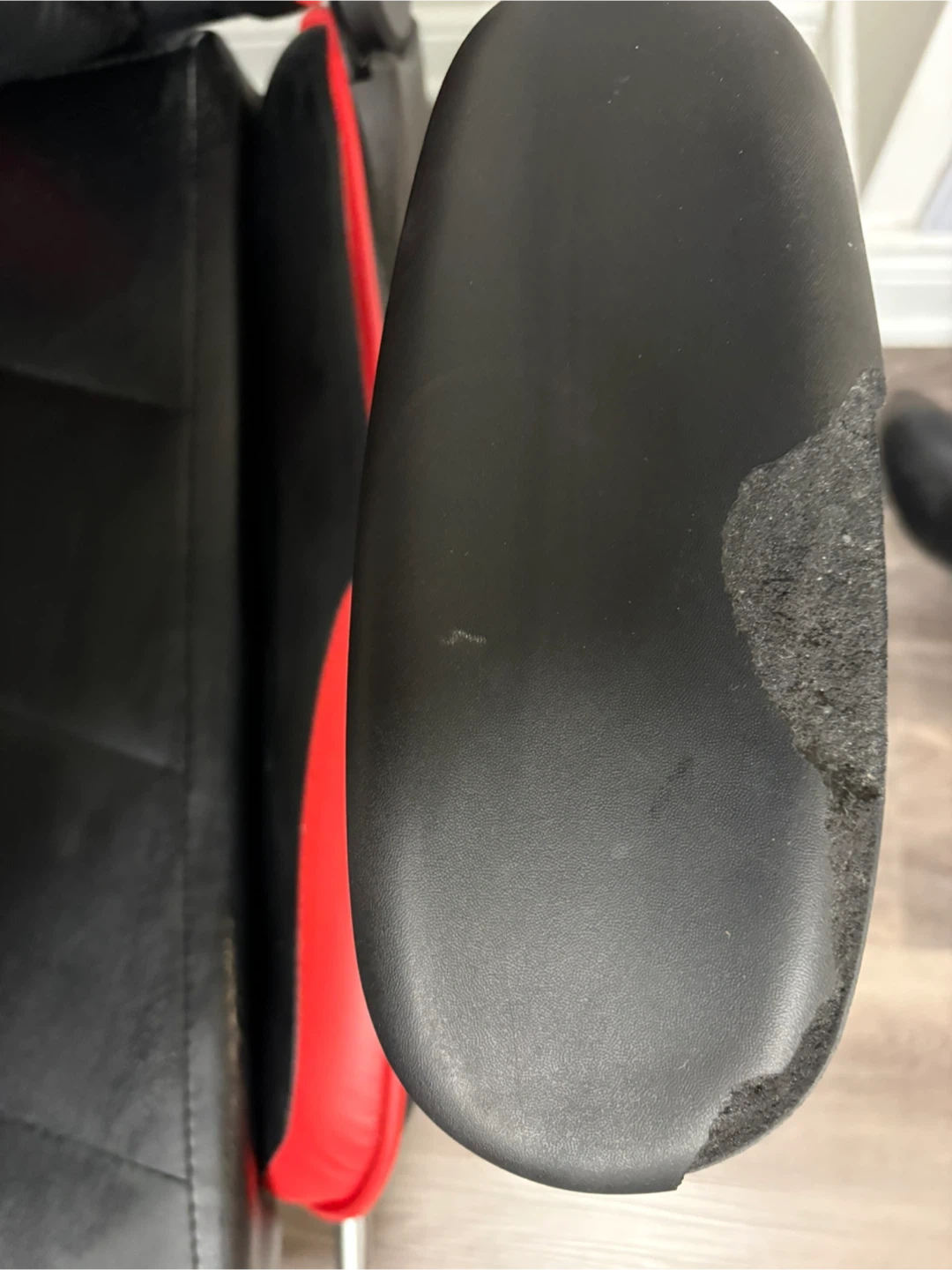 10Gaming chair with leg holder, it just has an small flaw and a piece is missing from the armrest