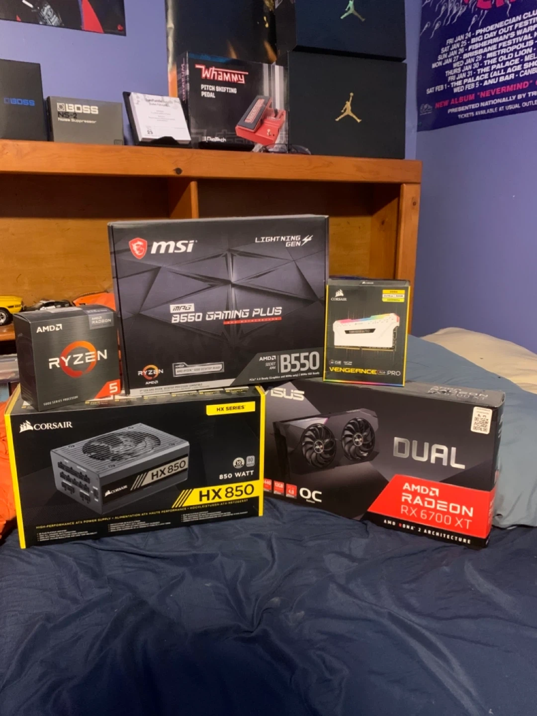Had this computer about 2 years great condition 500GB ssd Corsair HX 850w platinum power supply Dual radeon RX 6700 XT gpu Amd ryzen 5 5600G integrated graphics cpu (with cooling fan) MPG msi amd ryzen B550 gaming plus mother board 2x16GB 3200MHZ DDR4 vengeance rgb pro ram Can also sell with keyboard and mouse