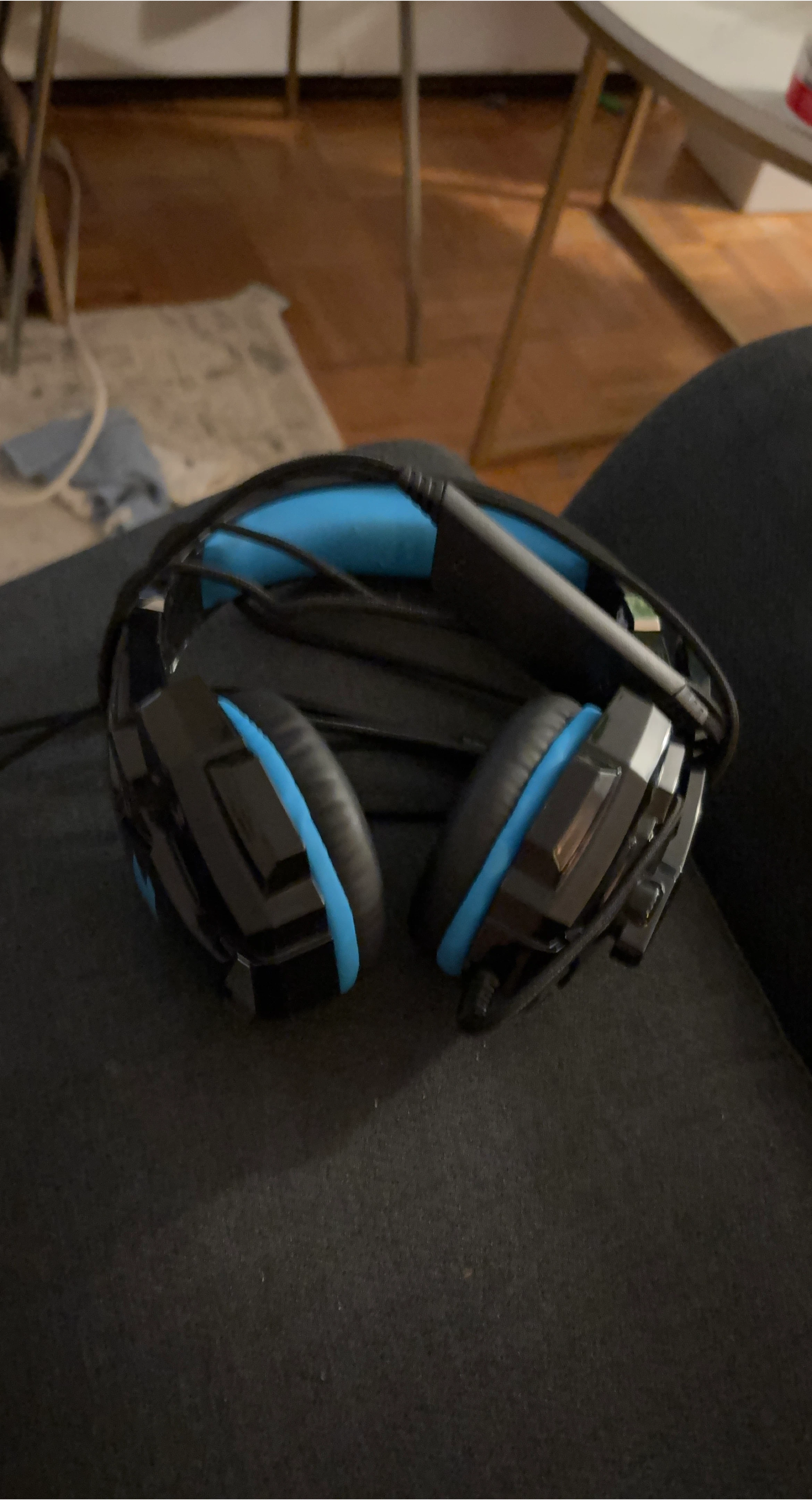 10Selling a gaming headset in black and blue. It's in great condition and ready for its next owner! Perfect for gaming sessions and chatting with friends. Feel free to message me if you're interested!