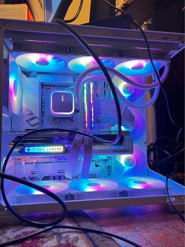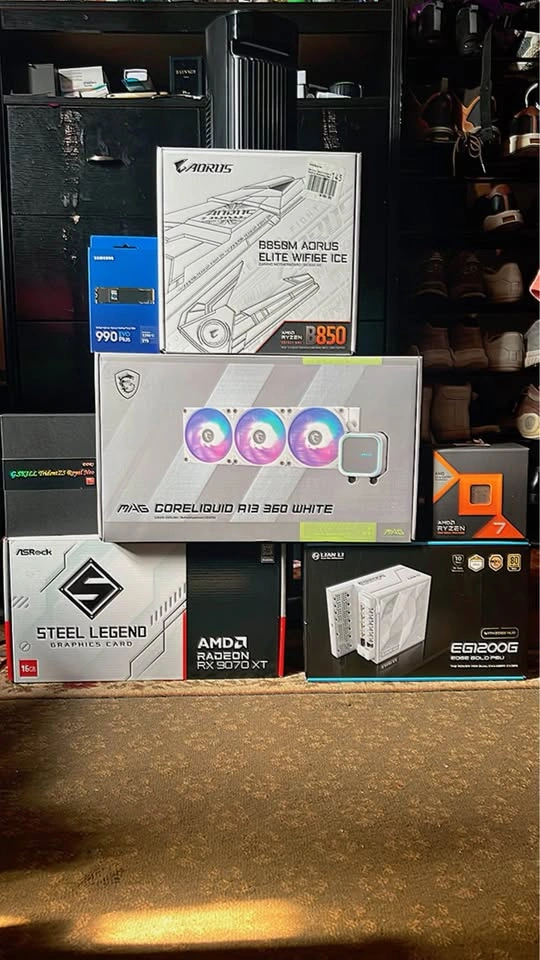Components: GIGABYTE AORUS ELITE B850M • Case: Antec C5 (white) • RAM: 2×16 GB G.Skill Trident Z Royal AMD EXPO (silver) • SSD: Samsung 990 EVO Plus 2 TB • CPU: Ryzen 7 7800X3D • GPU: ASRock Steel Legend 9070XT • PSU: Lian Li EDGE 1200 W • Cooler: MSI MAG Core Liquid A13 360 AIO Used for 2 months. I built it myself not so long ago, but I haven’t had time to use it because I’m mostly studying and barely at home. I need an iPad, so I’m selling this PC to get a small laptop to help me with my studies and work. Parts are completely new, and I can provide the boxes. I bought them at Micro Center and Amazon, mostly at Micro Center. The meet up place may vary depending on what works best for you; I’m up to meeting a little closer to you if that’s easier. I can do video calls or show videos about the PC if you’d like to feel more comfortable with the purchase.