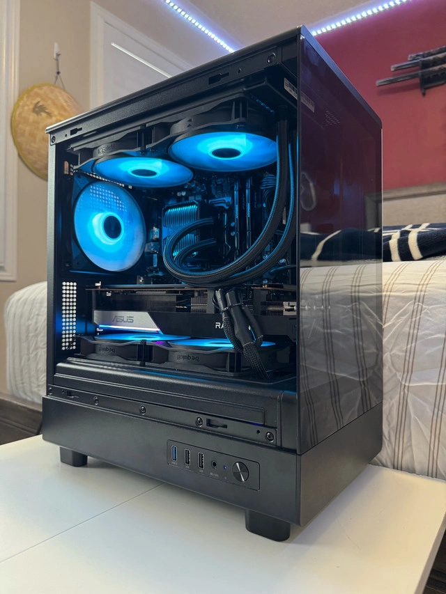 Super powerful gaming PC that can handle pretty much any game. Made for 1080p Ultra/1440p medium settings. Comes Wifi and Bluetooth ready, very well maintained. Specs: CPU: Intel Core i7 10700 Motherboard: Gigabyte B460M DS3H AX RAM: HyperX Fury 16gb (2x8gb) 3200mhz CL16 DDR4 Storage: Lexar 500gb M.2 NVME SSD Video Card: Asus Dual RX 6700XT 12gb VRAM Case: Darkflash DB330M MATX Power Supply: Corsair Rm750x Operating System: Microsoft Windows 11 Pro Cooler: Bequiet Silent loop 3 240mm AIO Liquid Cooler PC passes all stress tests (Cinebench, AIDA64, Furmark, etc.) and I can show it working on pickup or through a video if needed. Open to offers or trades for other gaming PCs / parts! Public meetup/pickup preferred.