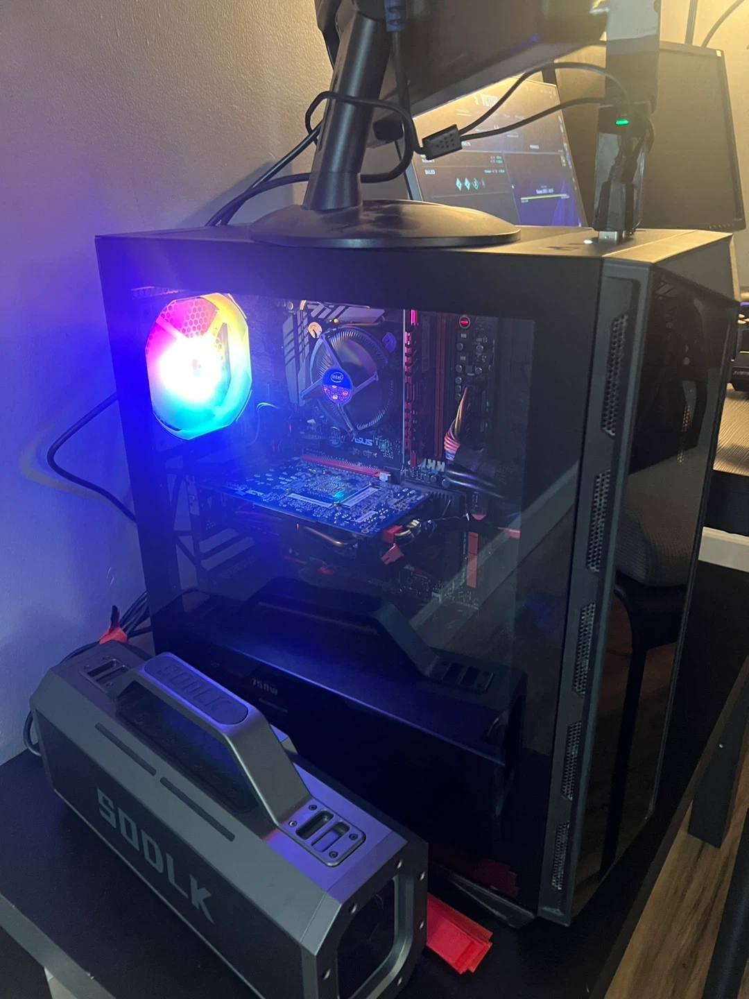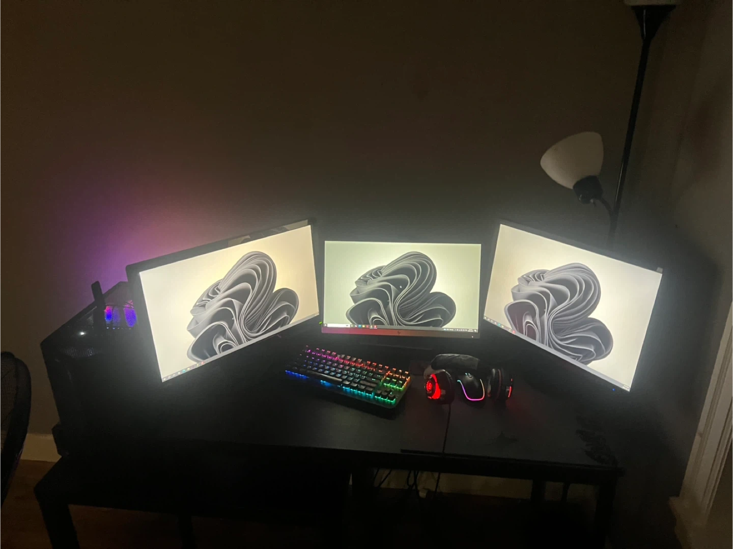 Selling a complete gaming setup! Includes three monitors, a gaming keyboard with RGB lighting, and a gaming headset. Perfect for anyone looking to upgrade their gaming experience or get started with a multi-monitor setup