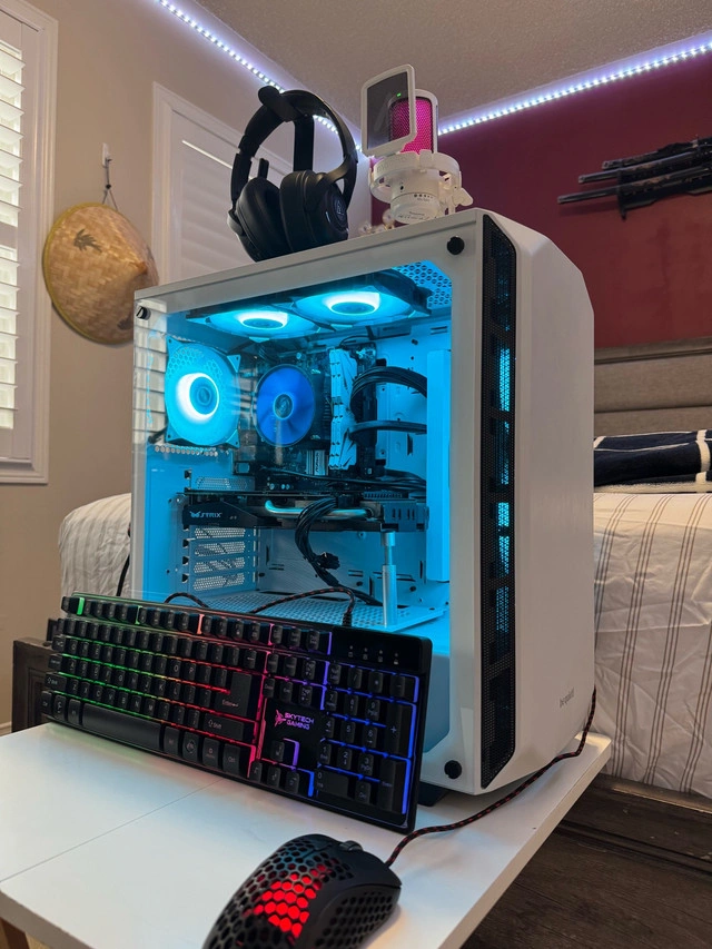 Great budget Gaming setup made for 1080p Medium settings. Comes Wifi ready, very well maintained and with a full set of quality peripherals. Specs: CPU: Intel Core i3 10100 Motherboard: Asrock H410M-HVS Lga1200 RAM: Netac Shadow II 16gb (2x8gb) 3200mhz CL16 Boot drive: Silicon Power A55 500gb M.2 Sata SSD Storage: 300gb Toshiba Hard drive Video Card: Asus Strix GTX970 (equivalent to rx570) Case: Bequiet Pure Base 500 Power Supply: Lenovo 500W 80+ Silver rated psu Operating System: Microsoft Windows 11 Pro Cooler: Deepcool Theta PC passes all stress tests (Cinebench, AIDA64, Furmark, etc.) and I can show it working on pickup or through a video if needed. Peripherals: Keyboards: Skytech gaming keyboard with rgb Mouse: Skytech M-1200N Headset: EKSA Air Comfy E4 + headset stand Mic: Moano DM20 RGB Public meetup/pickup preferred.