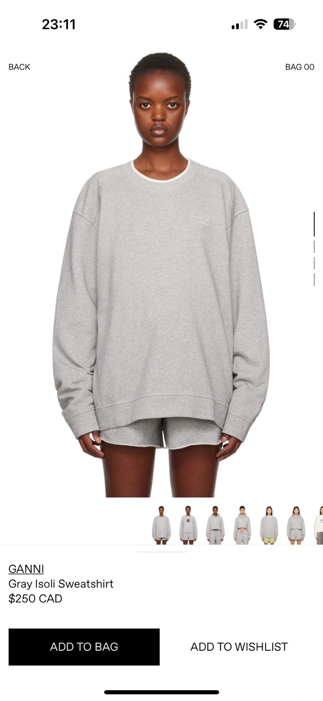 Ganni sweatshirt in grey. I only dried once, never wore The 5’7 model’s wearing s-m size