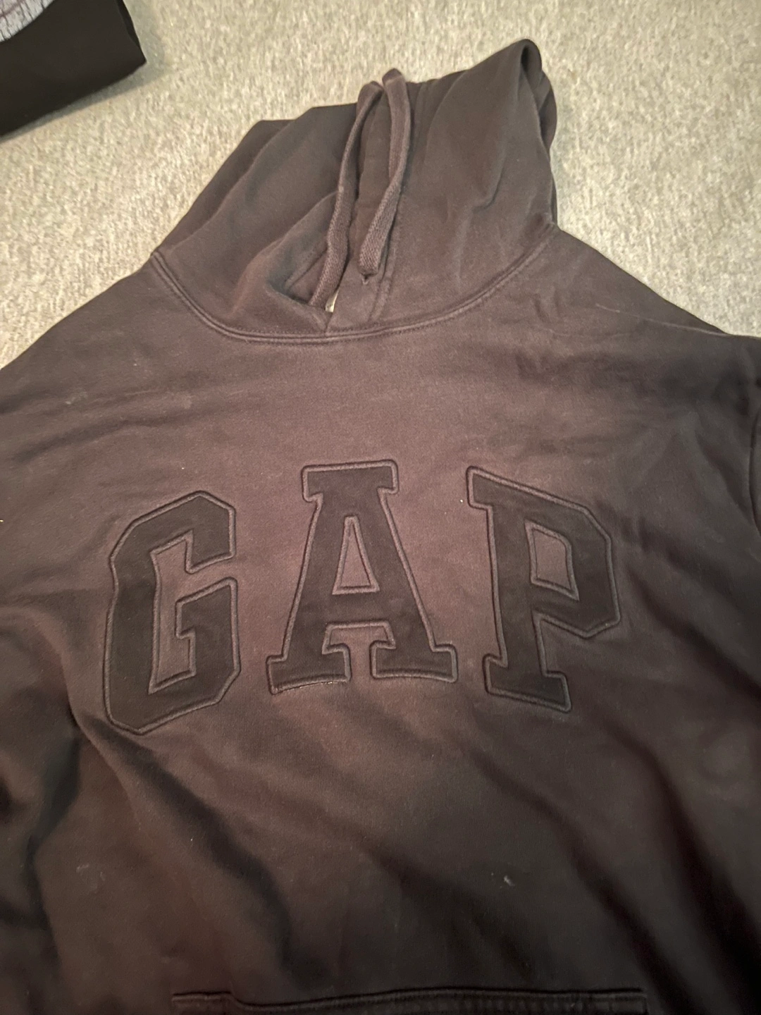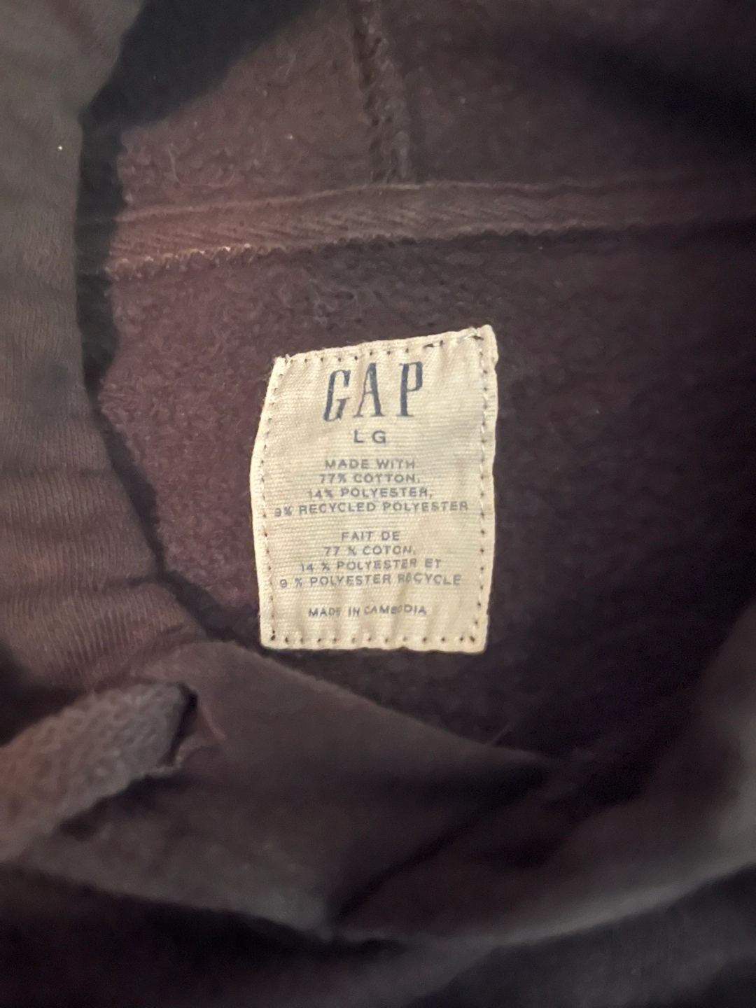 10Black hoodie with a large GAP logo on the front. Size LG.