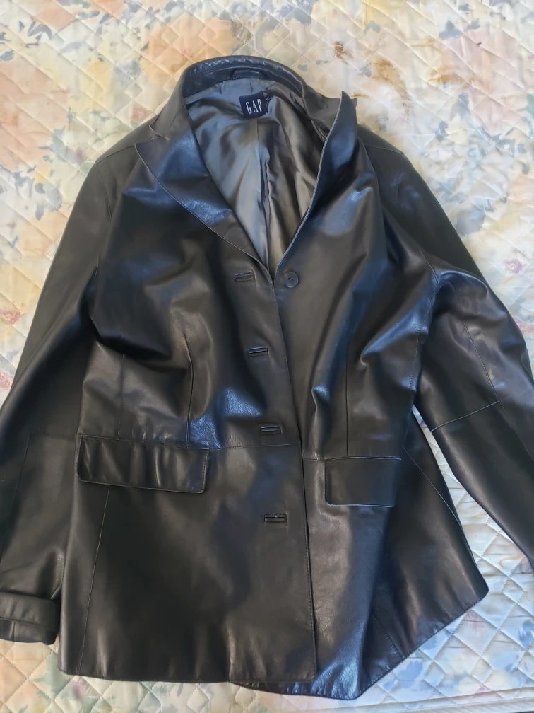 Selling a stylish black leather jacket from GAP! It's in great condition and ready for a new home. The material is soft and supple, perfect for adding a touch of edginess to any outfit