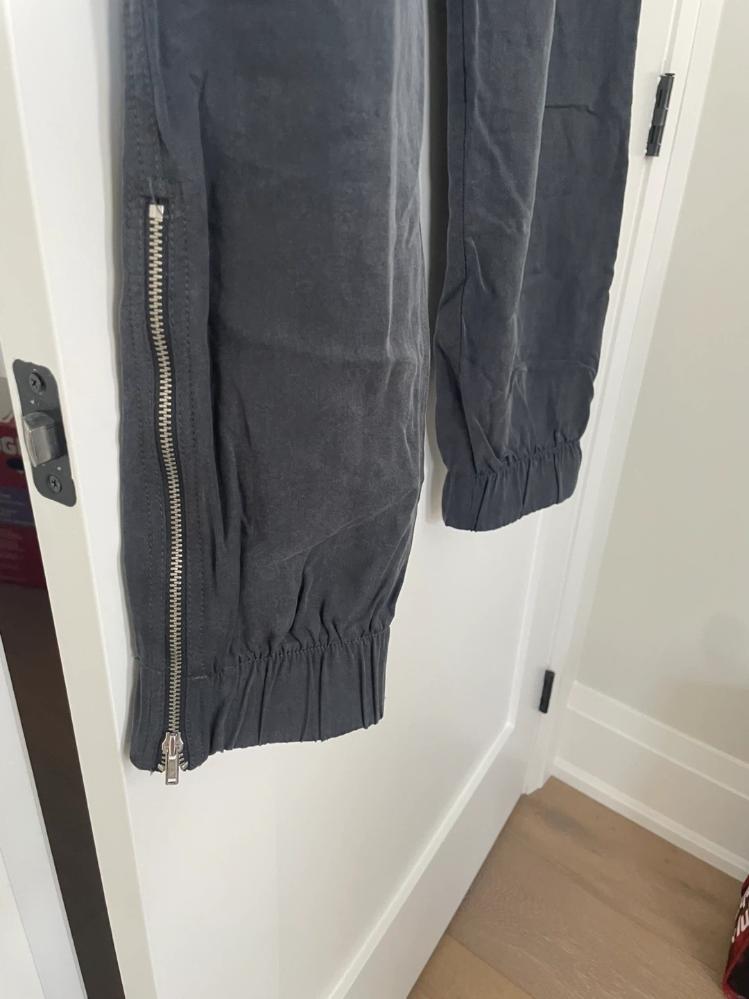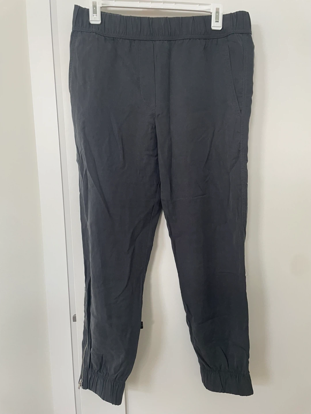 5Comfy Gap jogger pants in size small! These pants are a stylish and casual option for everyday wear. They feature a comfortable elastic waistband and a relaxed fit. The zippers on the side add a unique touch!