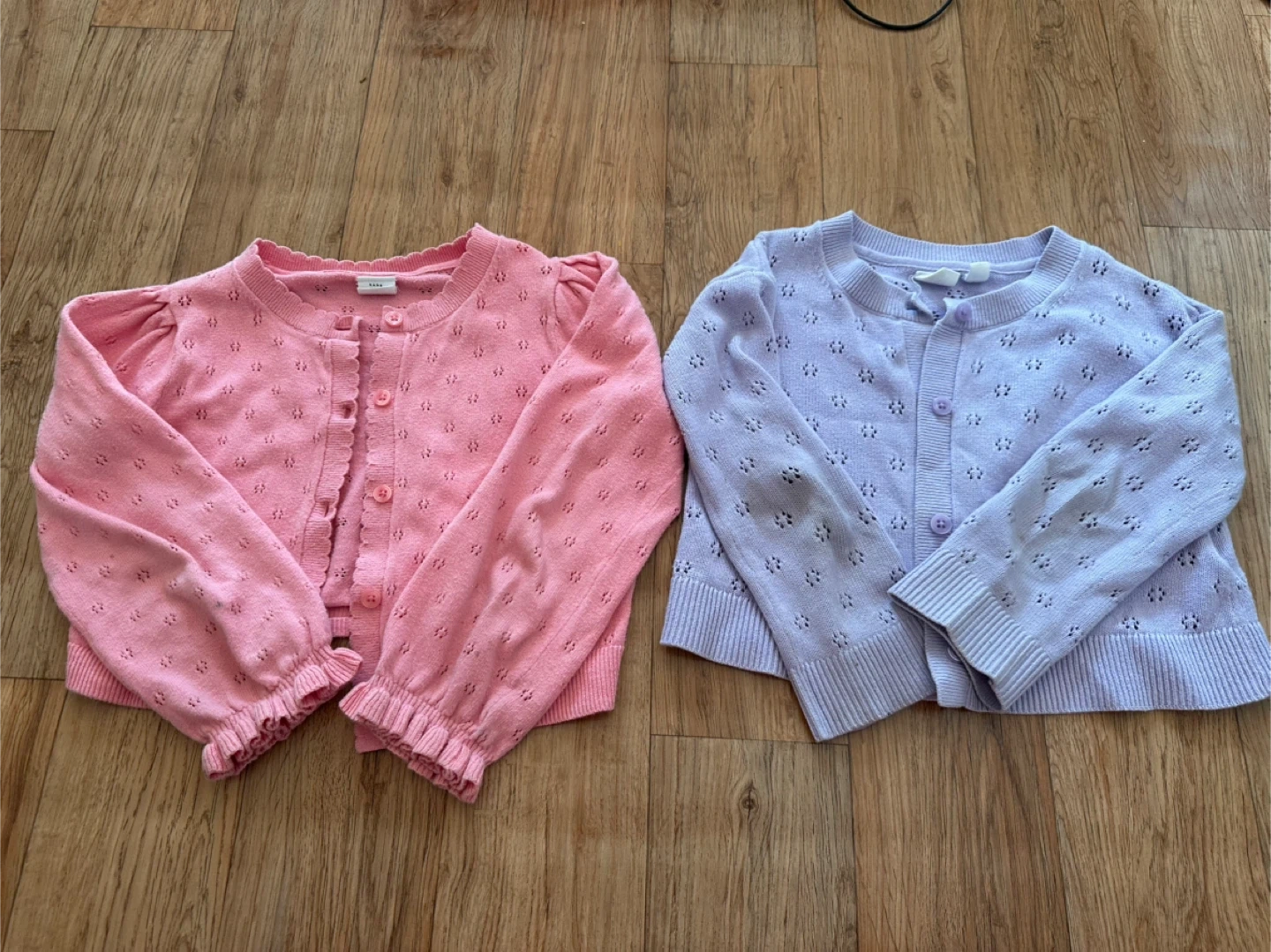 Two adorable cardigans from Gap Kids! One is a pretty pink and the other is a lovely lilac colour. Both are size XS (TP). They're in great condition and ready for a new home! 10$ each