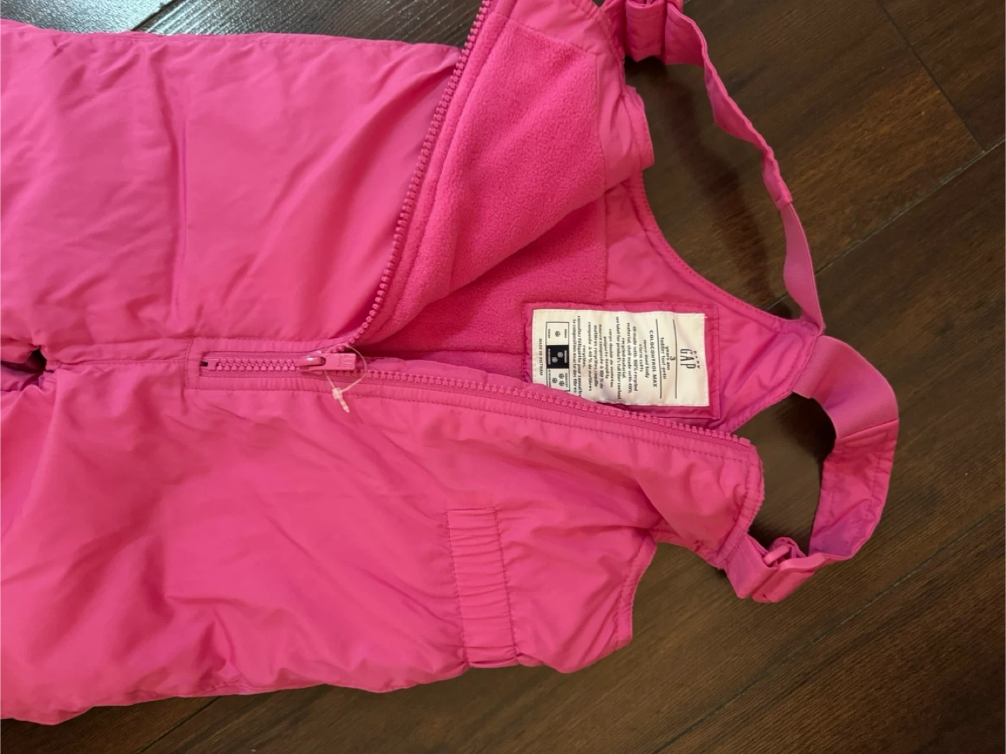 A cute pink snowsuit from GAP Kids! Perfect for keeping your little one warm and dry during those snowy Canadian winters. It's brand new and ready for a new home. It’s 60 dollar.