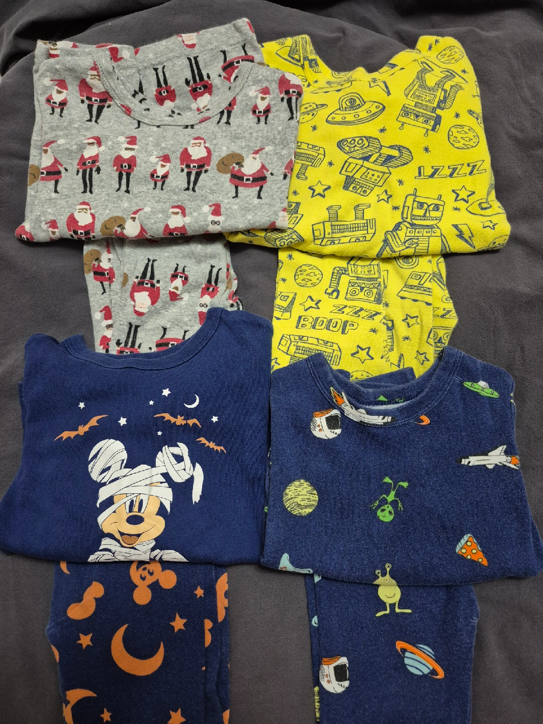 1114 pairs of Gap Pajamas. One pair of Christmas Pajamas and one pair of Halloween pajamas. Size 3.