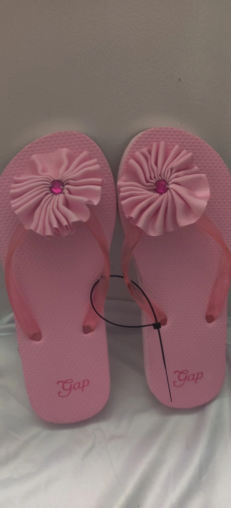 These adorable pink sandals from Gap are perfect for adding a touch of sweetness to any outfit! They feature a cute flower detail. Size is not indicated.