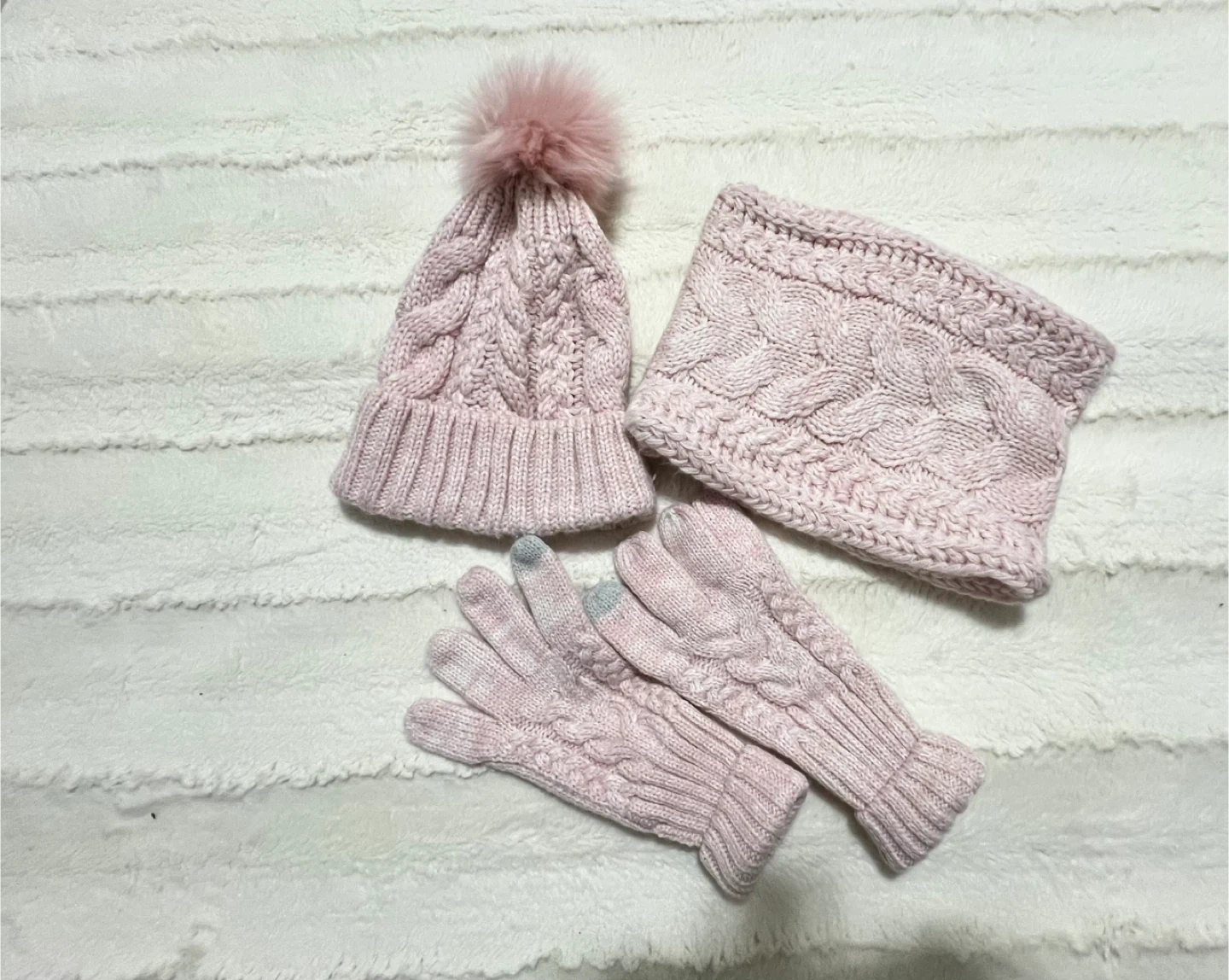 2183 piece winter accessories- hat, neckwarmer and mittens. Hat is warm - fleece lined. Worn once. From a smoke/pet free home Pickup North Oshawa - Windfields